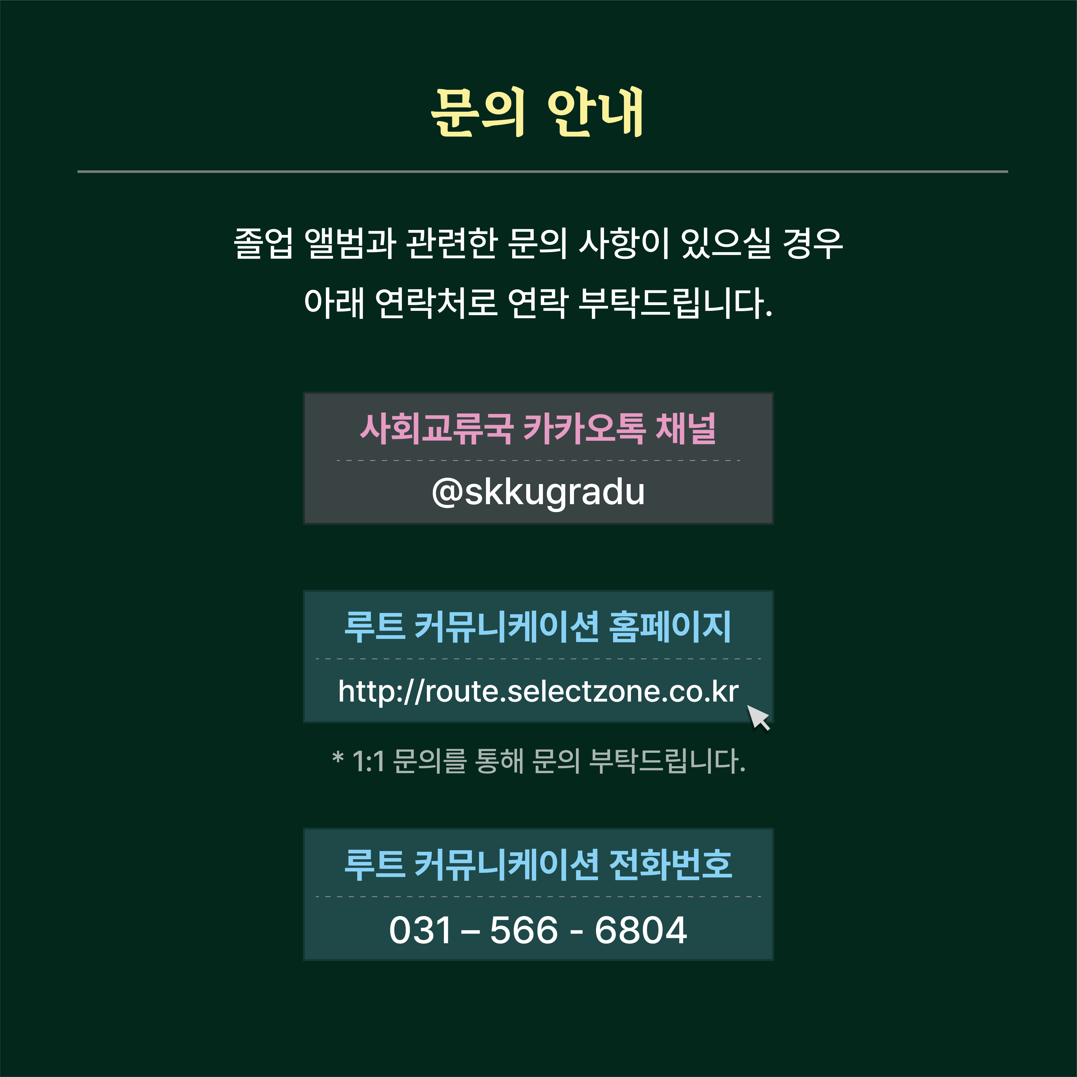 졸업 앨범과 관련한 문의 사항이 있으실 경우 아래 연락처로 연락 부탁드립니다.