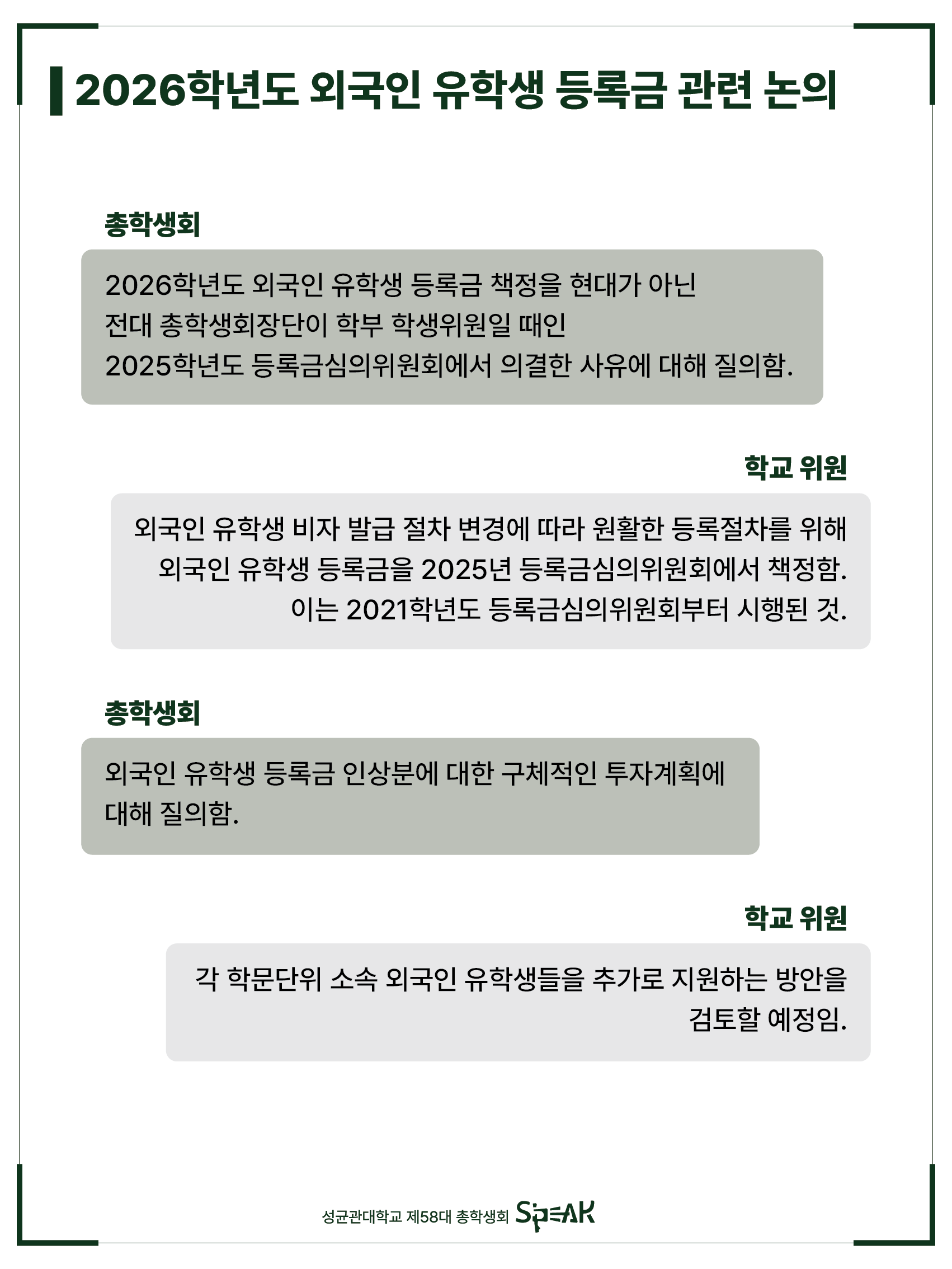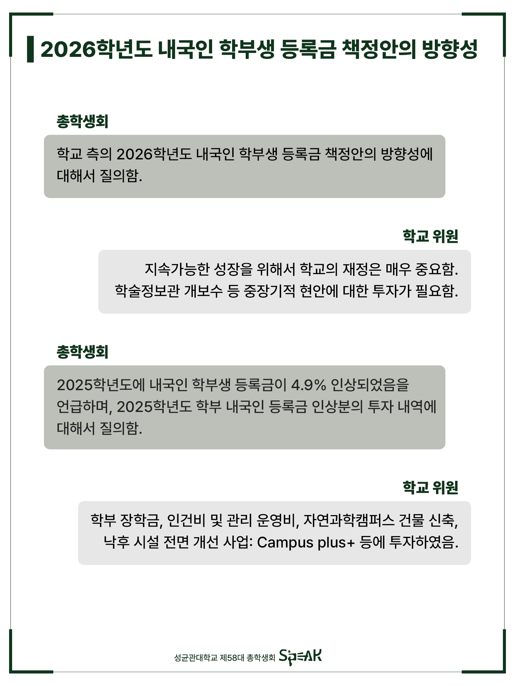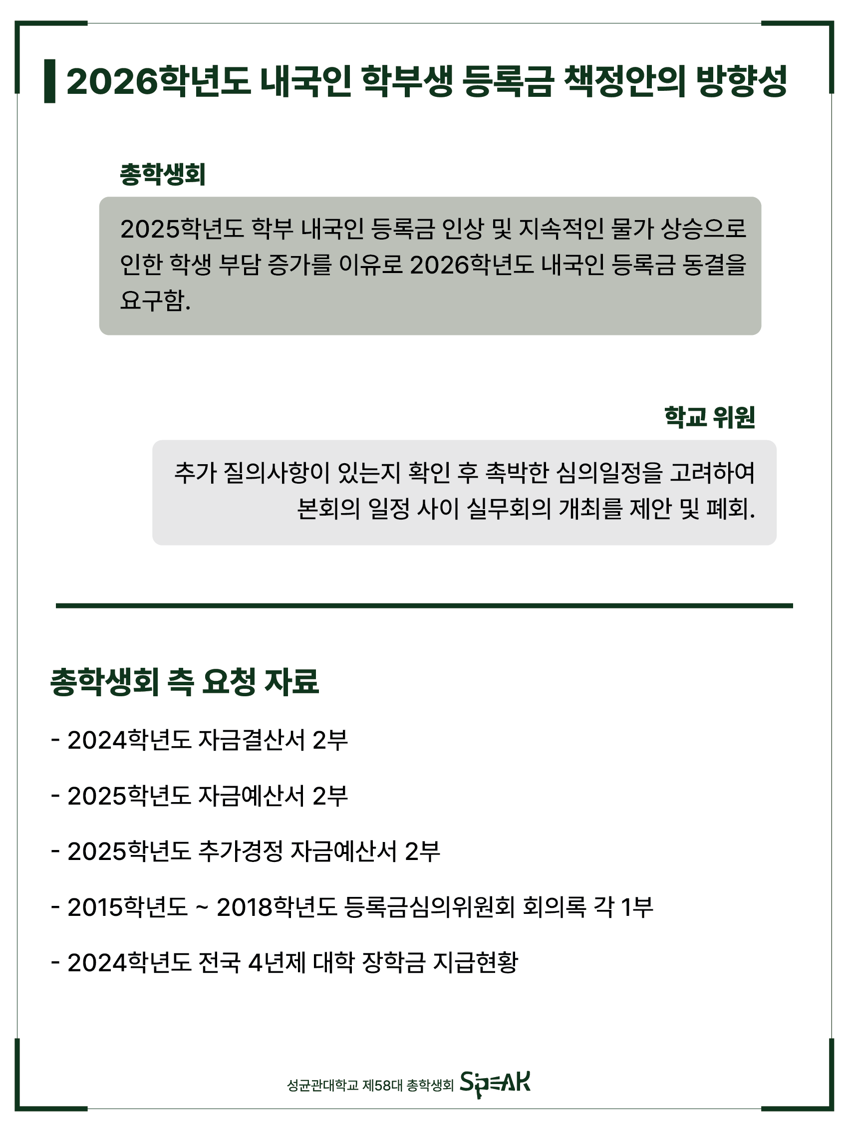 안녕하세요, 성균관대학교 제58대 총학생회 S’PEAK입니다.