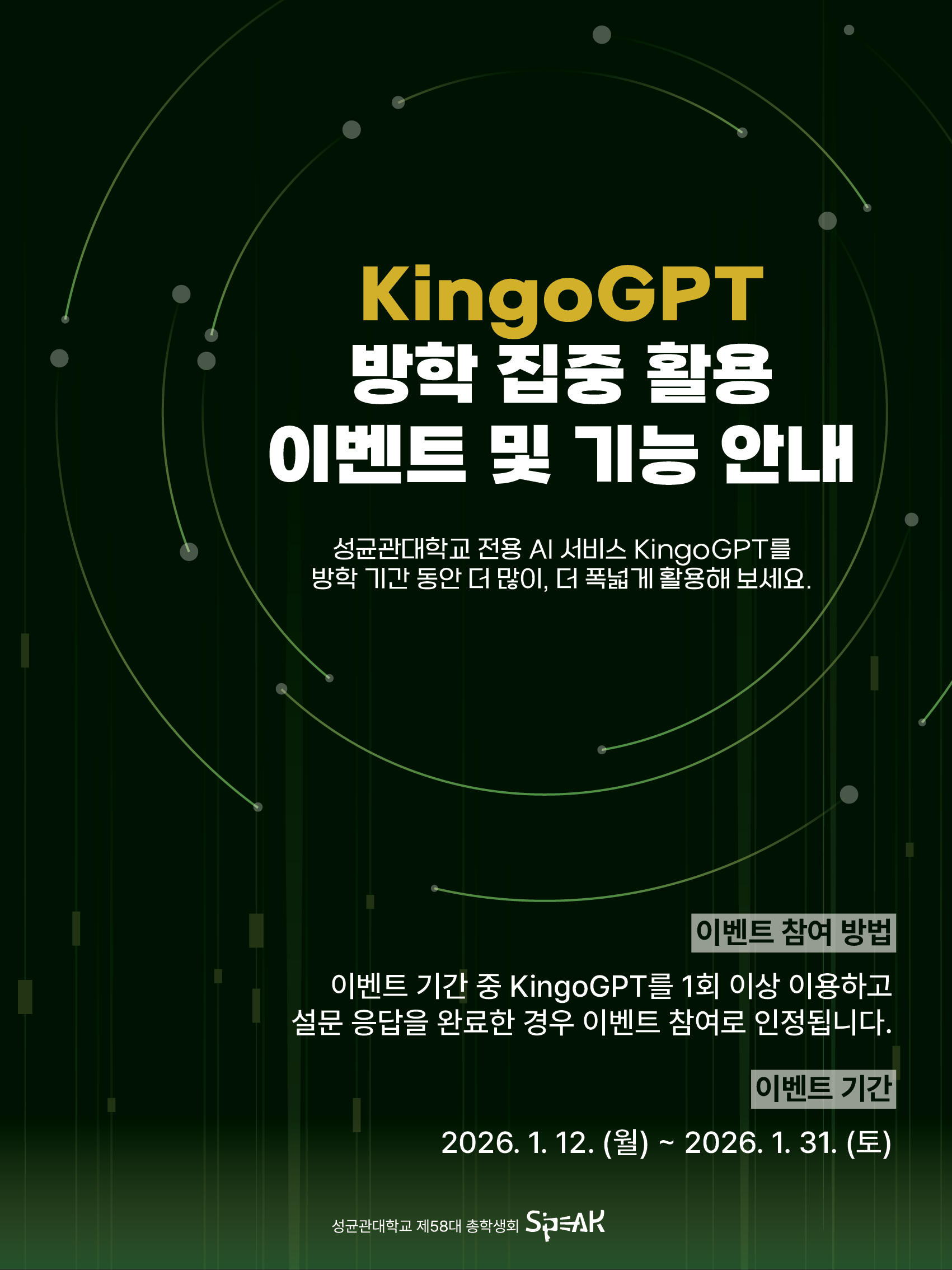 We invite you to explore and make broader use of KingoGPT, SKKU dedicated AI service, throughout the winter break.