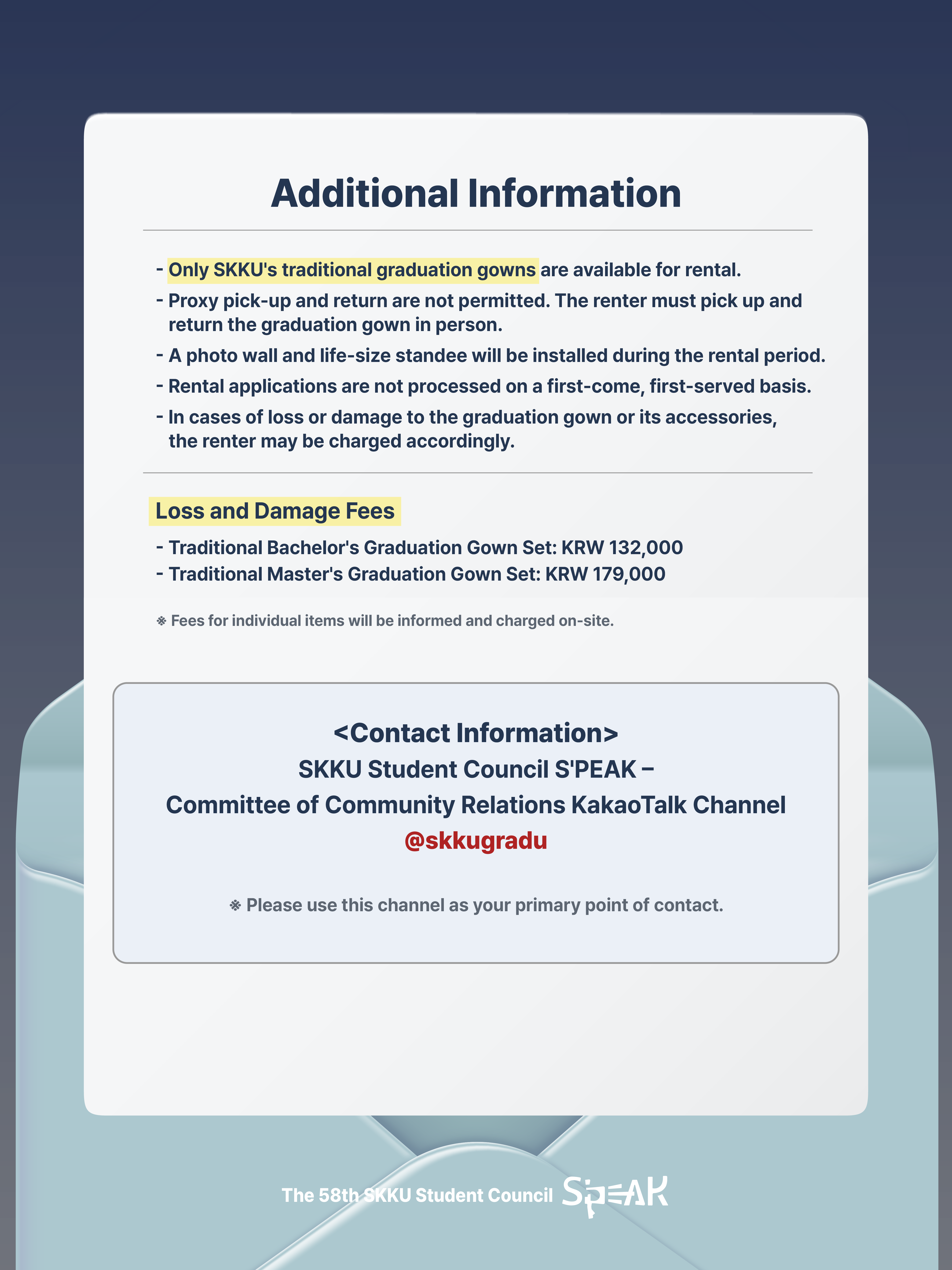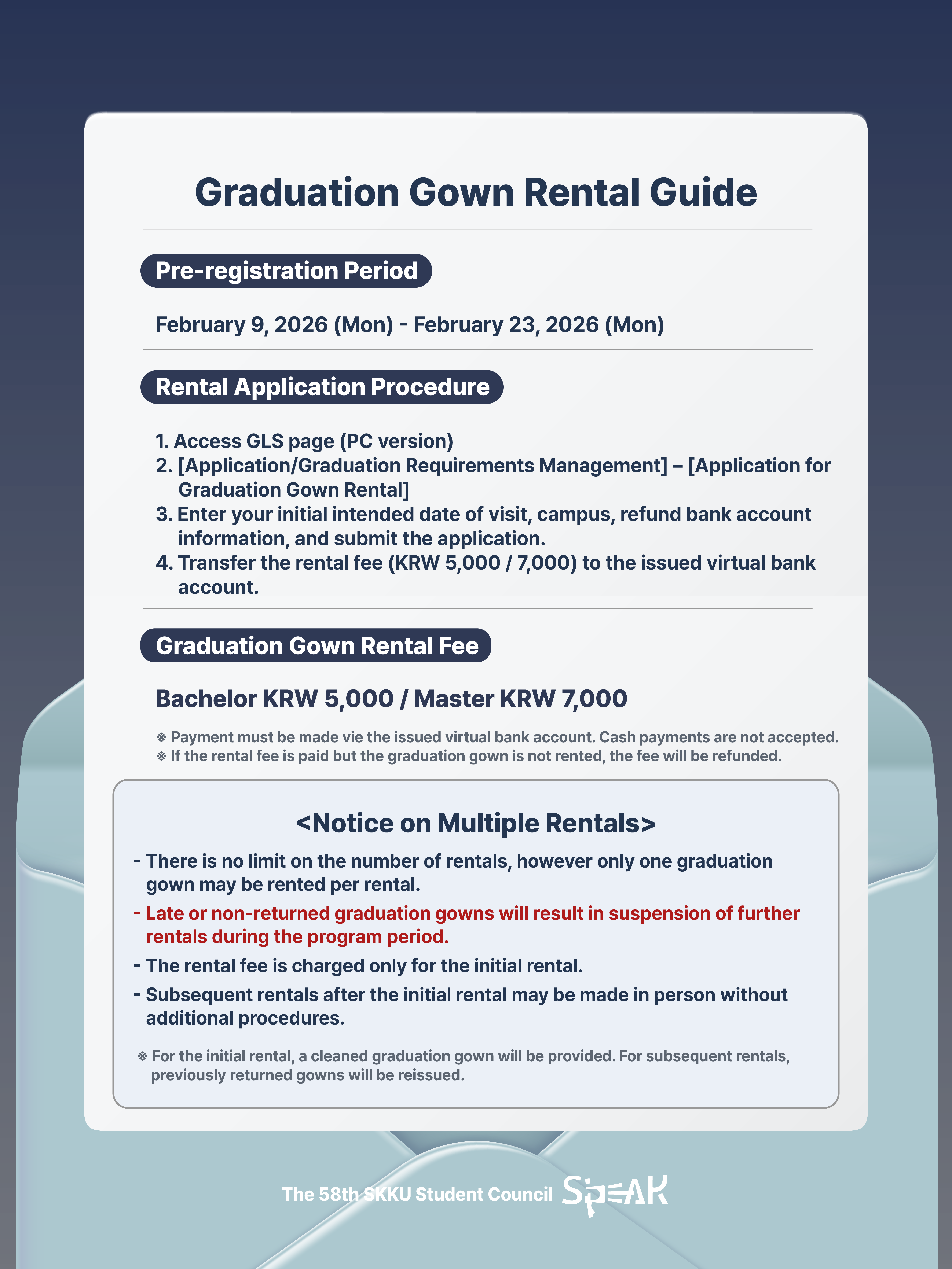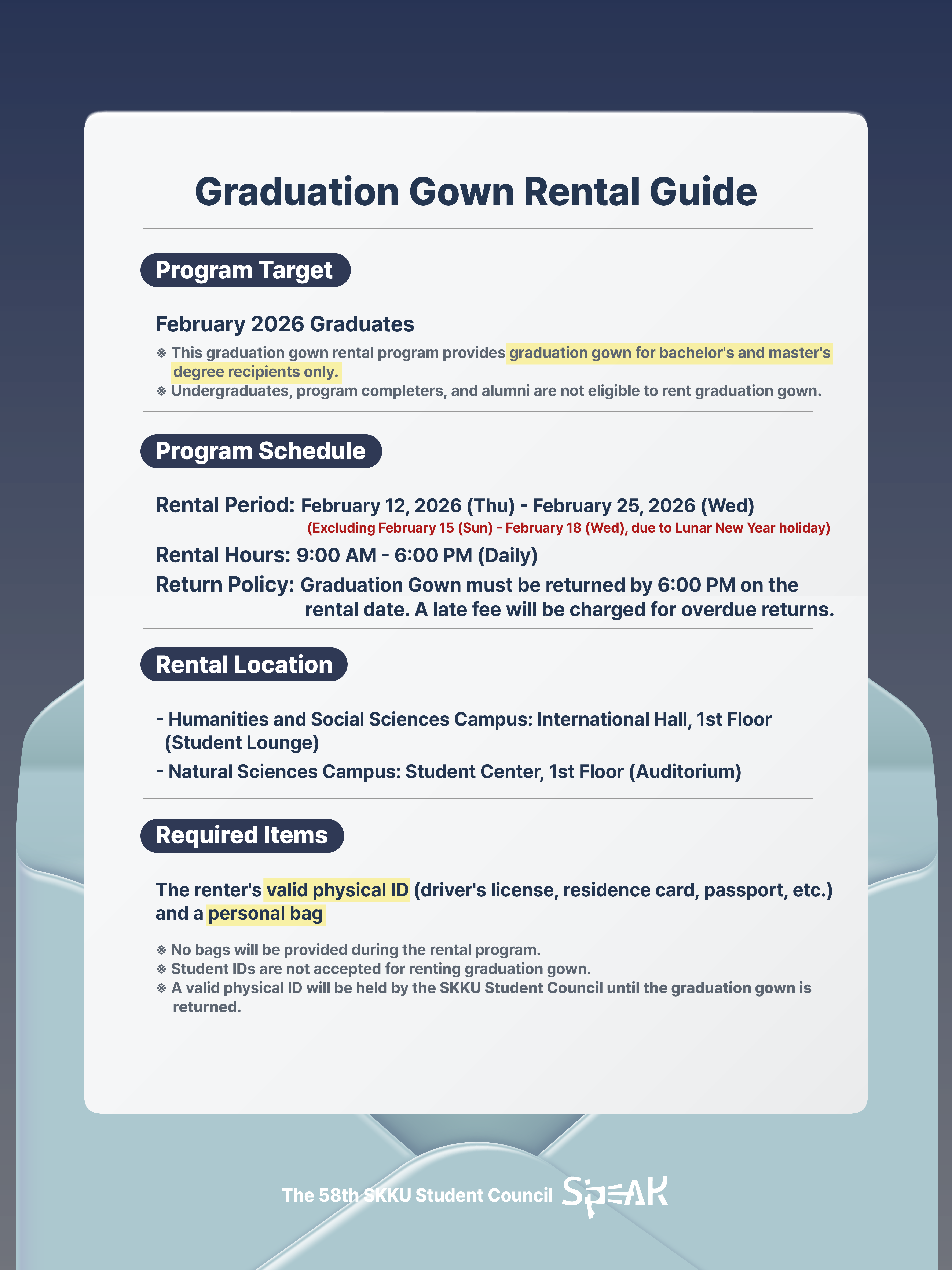 ※ A valid physical ID will be held by the SKKU Student Council until the graduation gown is returned.