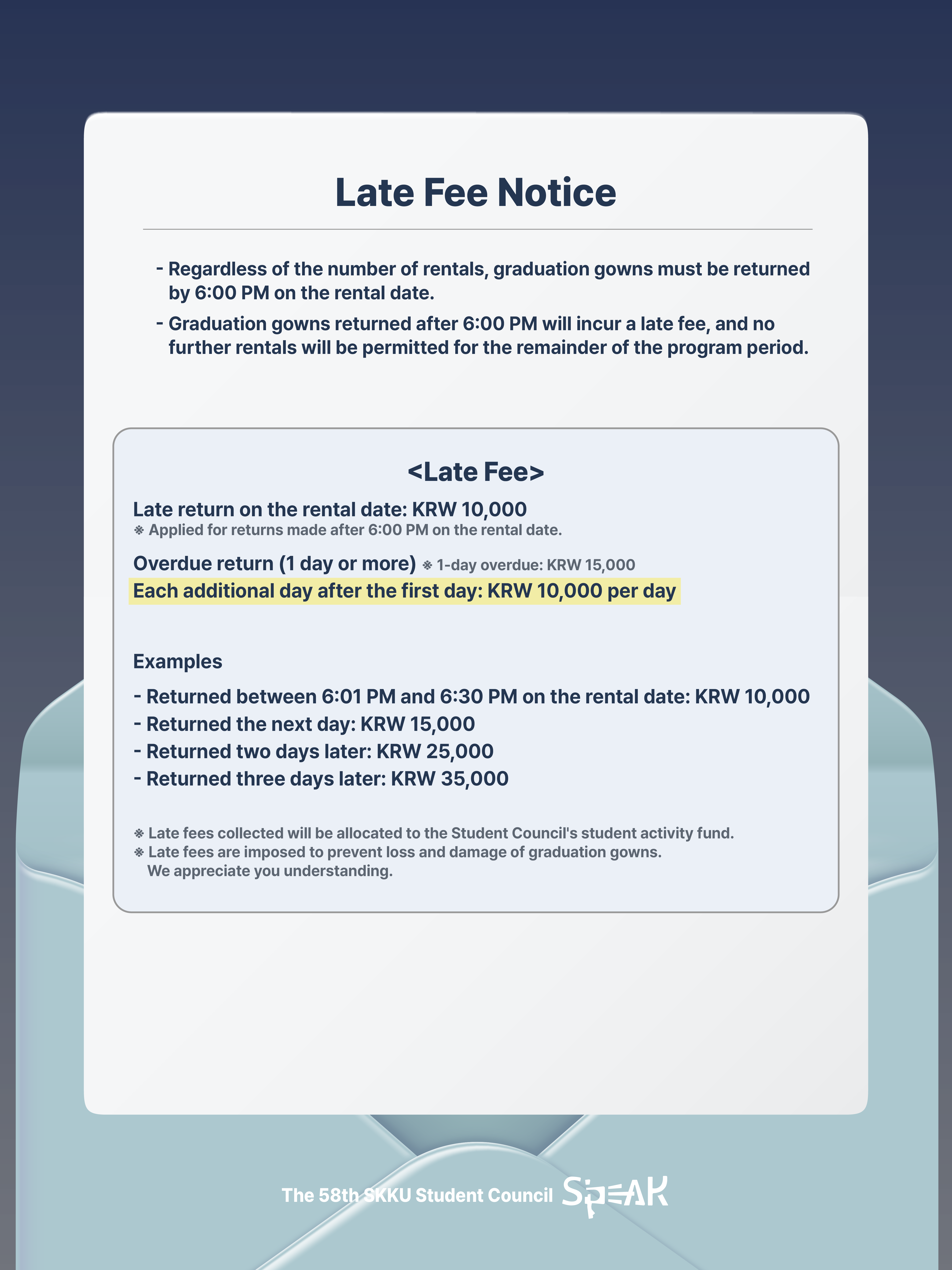 ※ Late fees collected will be allocated to the Student Council's student activity fund.