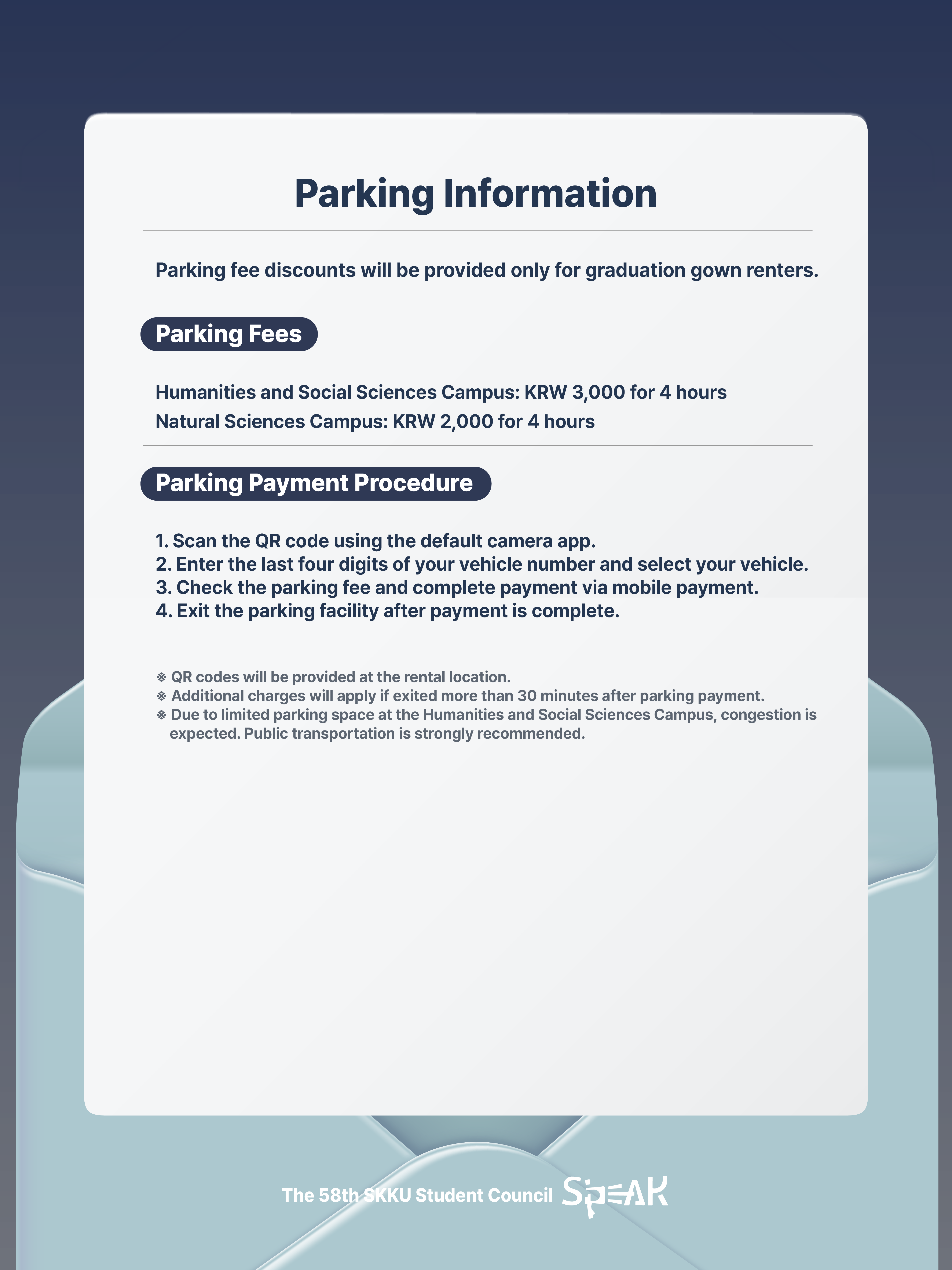 ○ Parking fee discounts will be provided only for graduation gown renters.