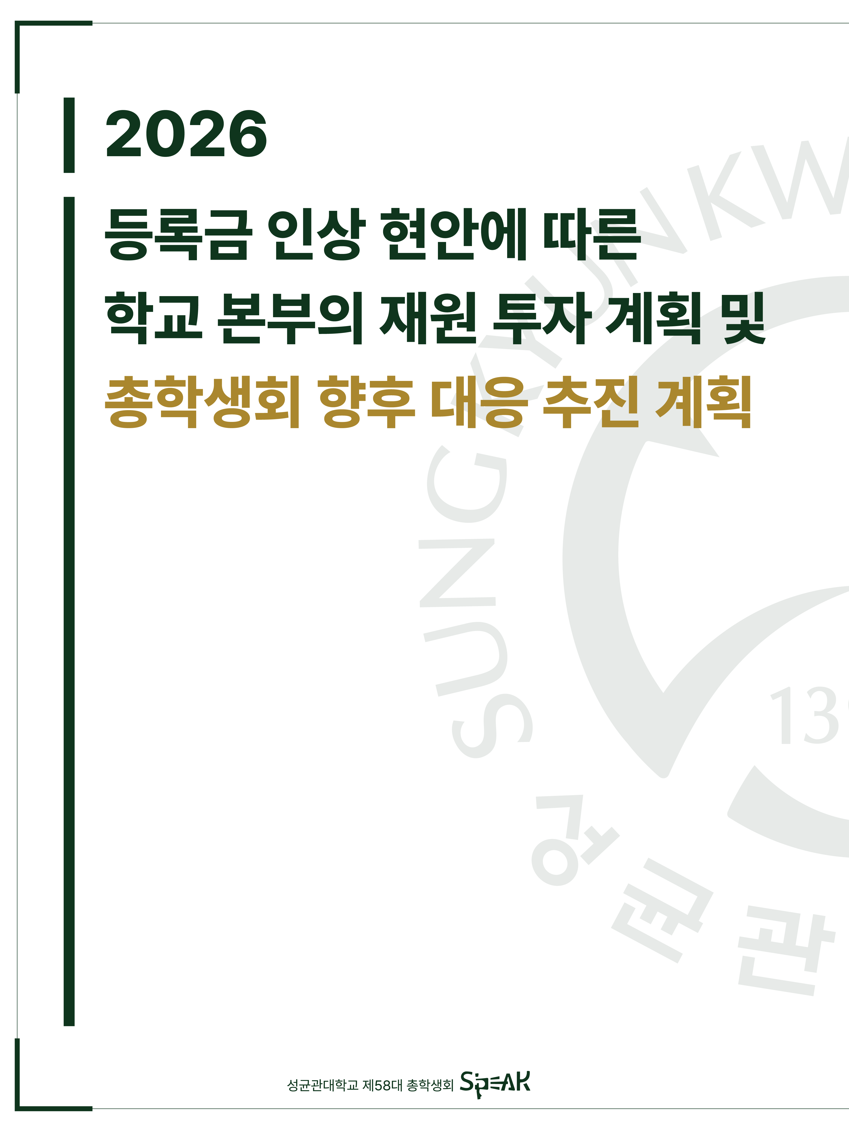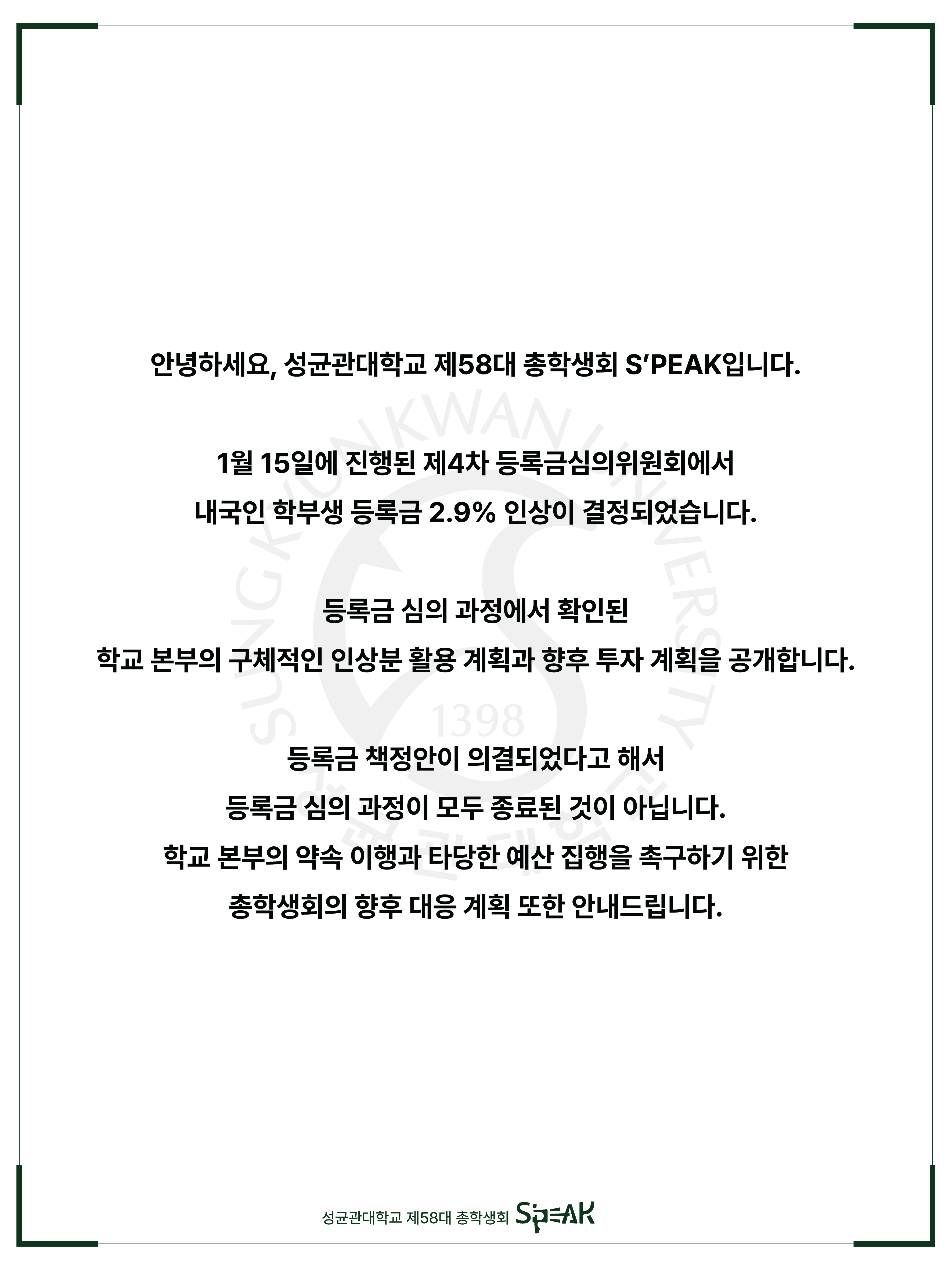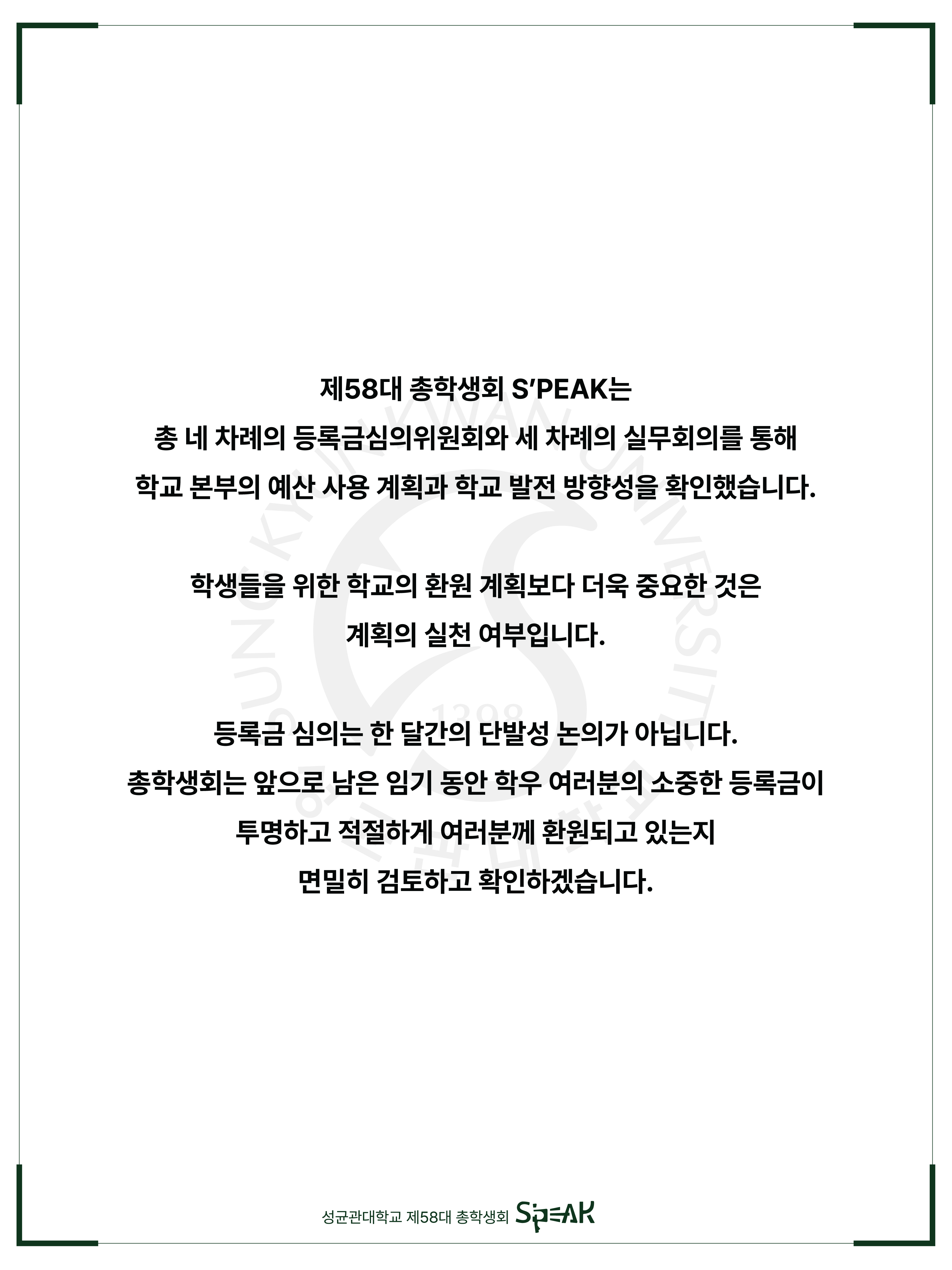 안녕하세요, 성균관대학교 제58대 총학생회 S'PEAK입니다.