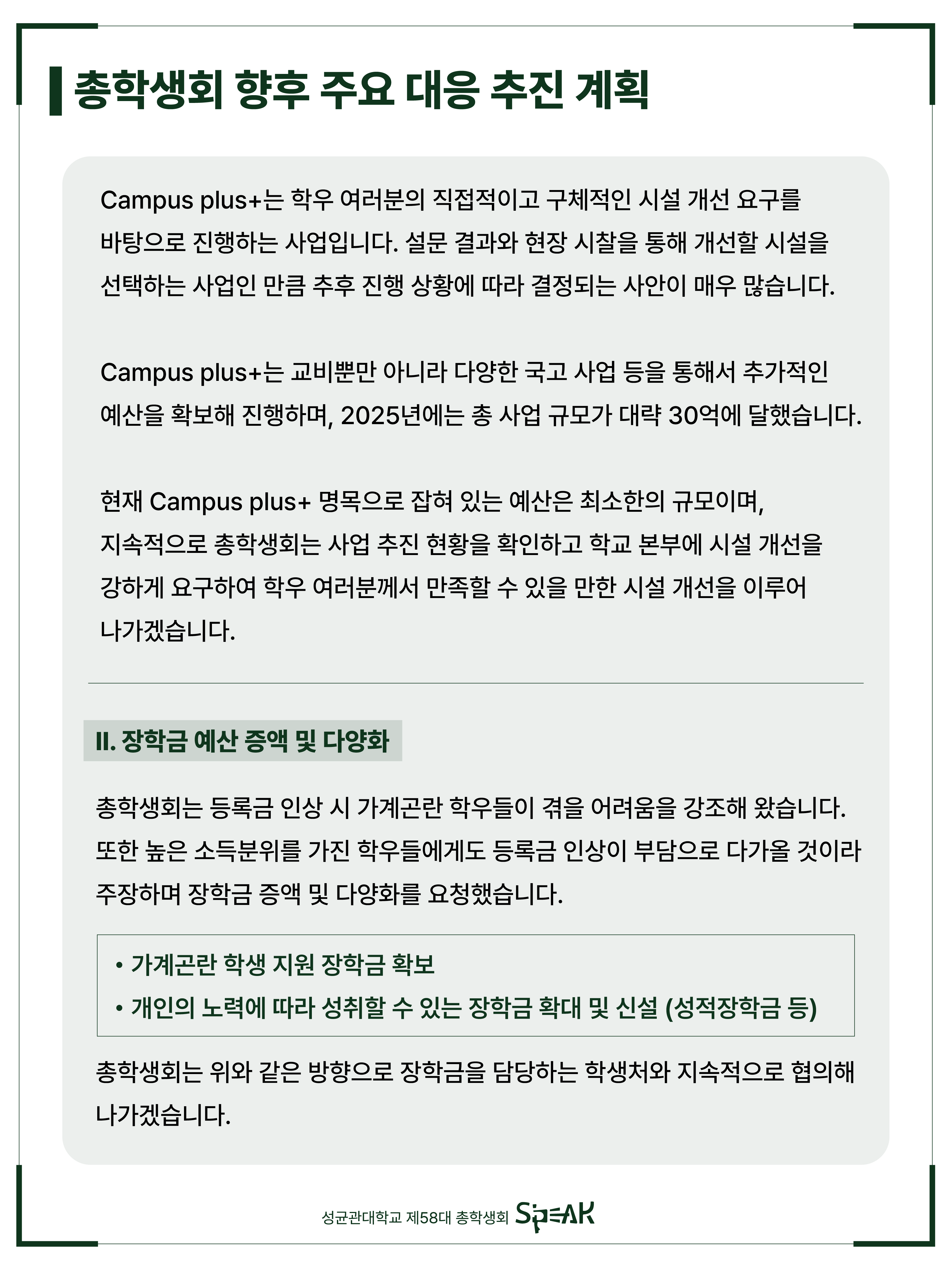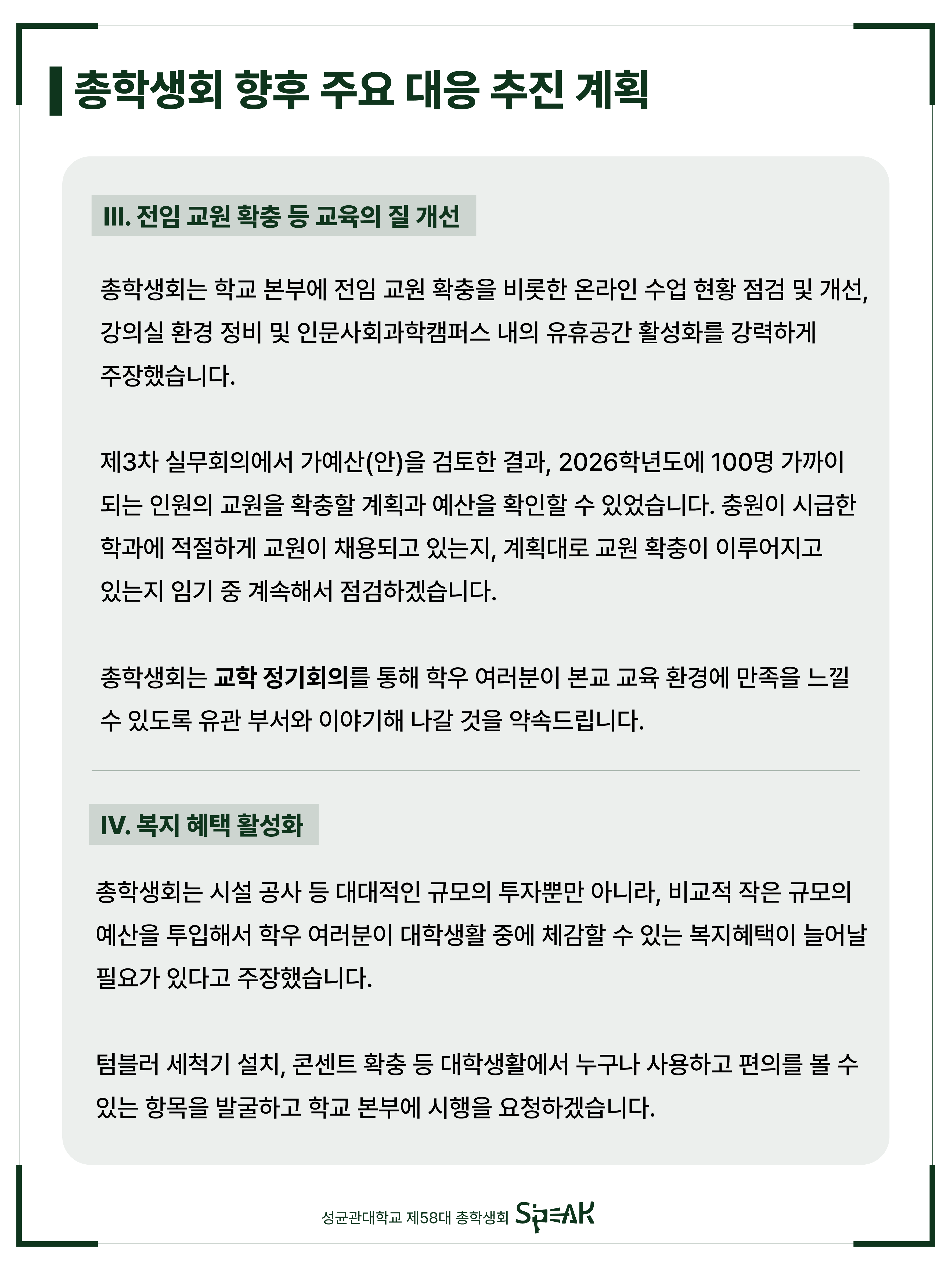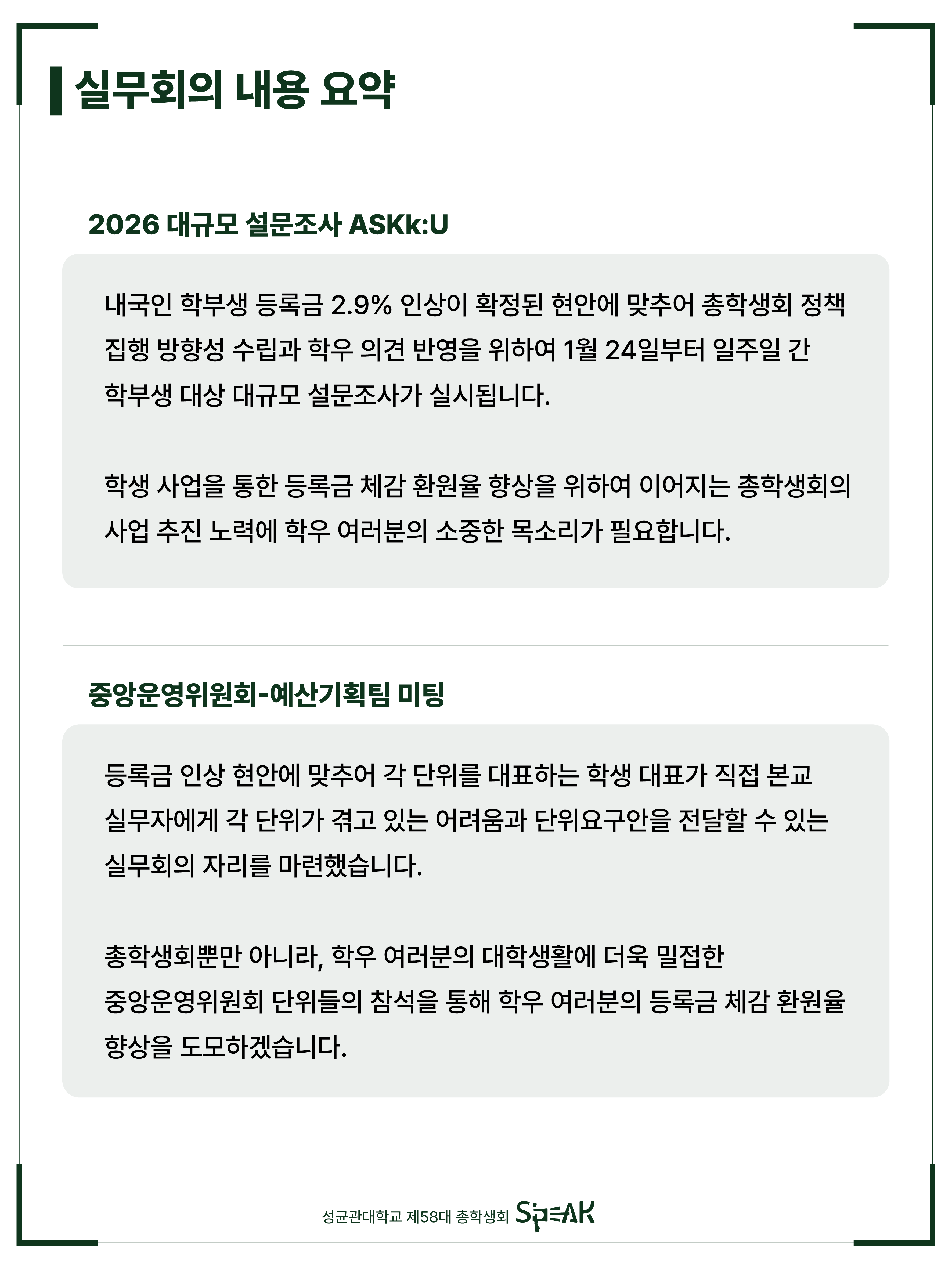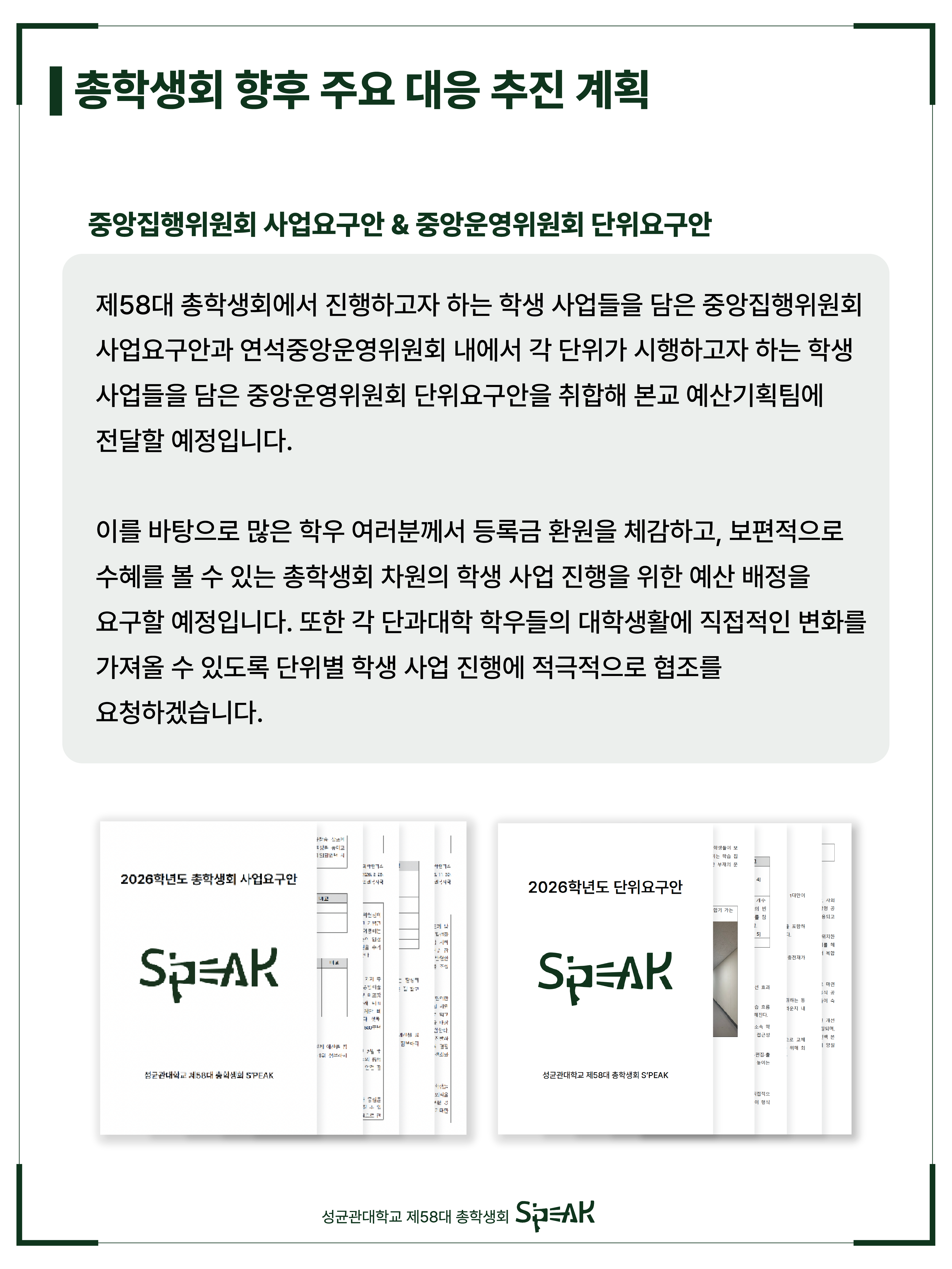 안녕하세요, 성균관대학교 제58대 총학생회 S'PEAK입니다.