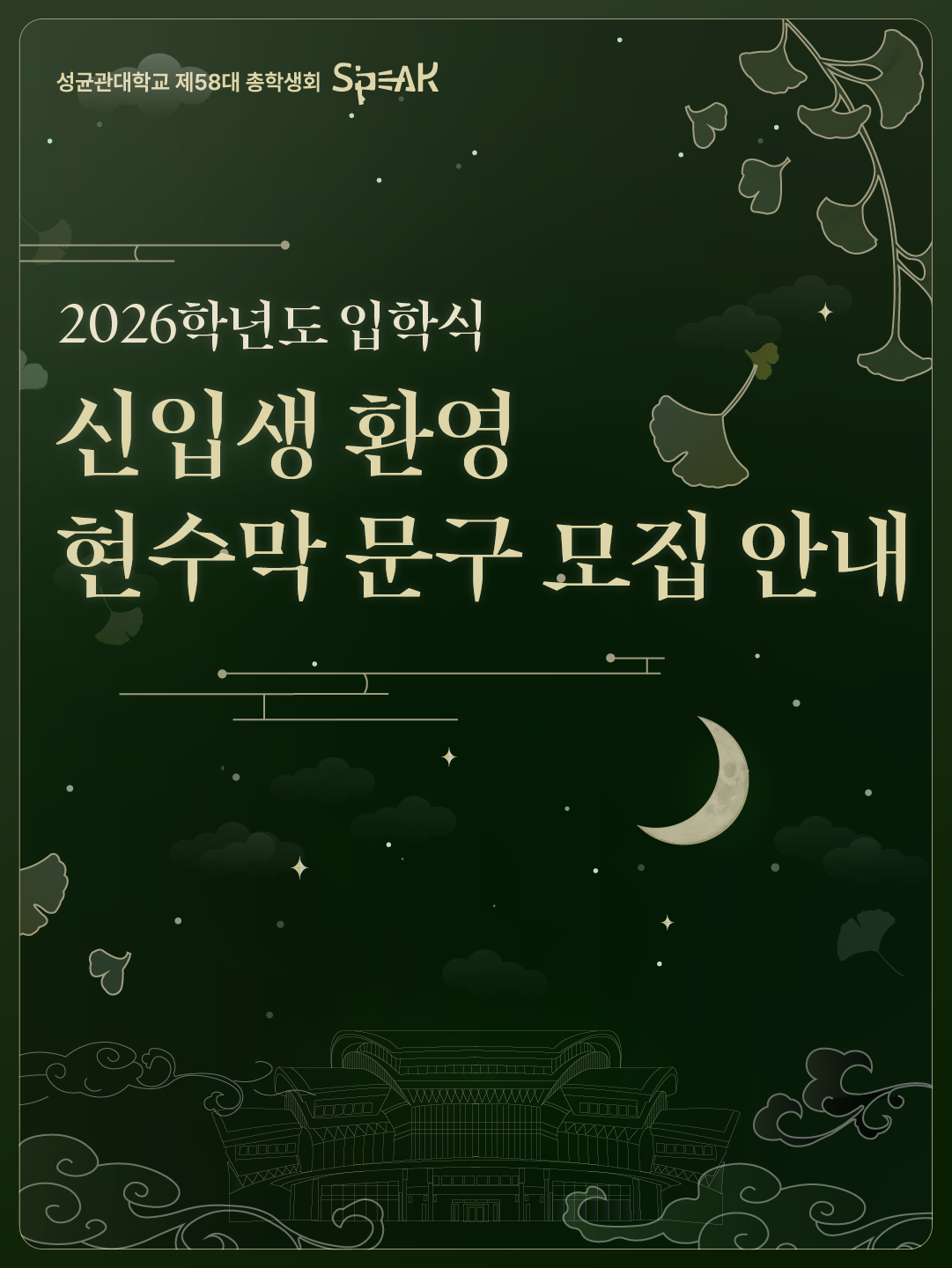We are now accepting submissions for welcome banner slogans to be displayed at the 2026 Sungkyunkwan University entrance ceremony!