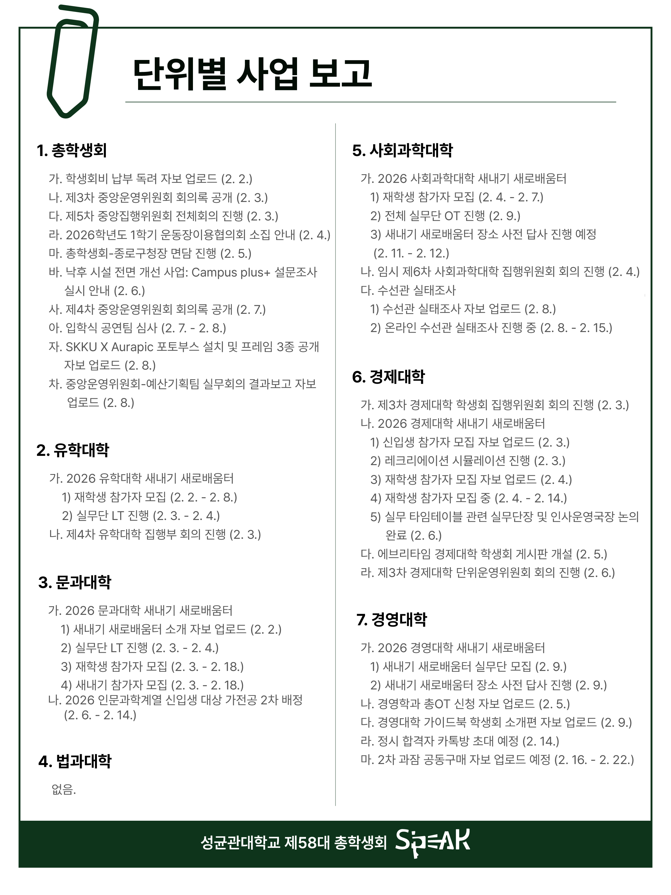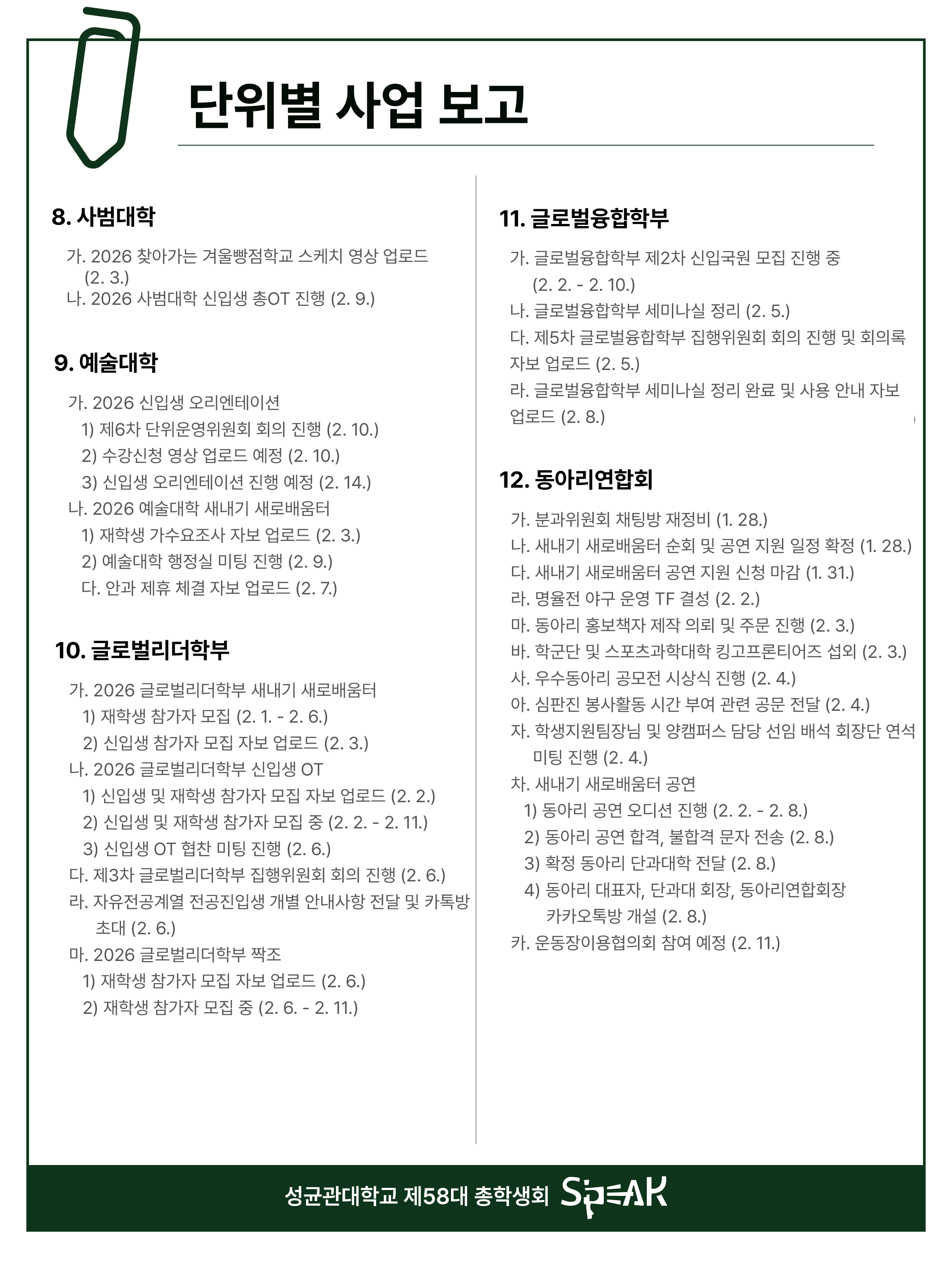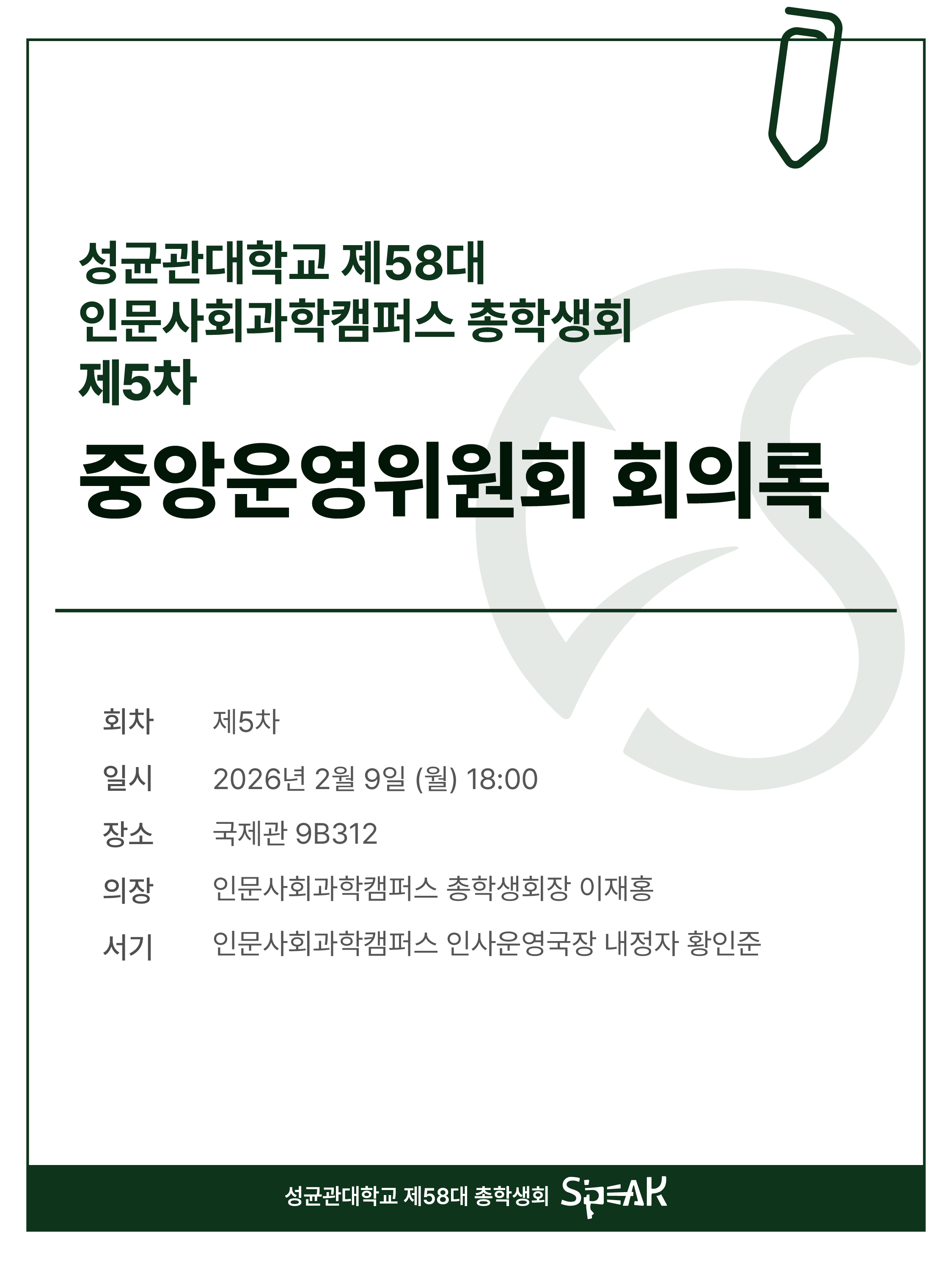 안녕하세요, 성균관대학교 제58대 총학생회 S’PEAK입니다.
