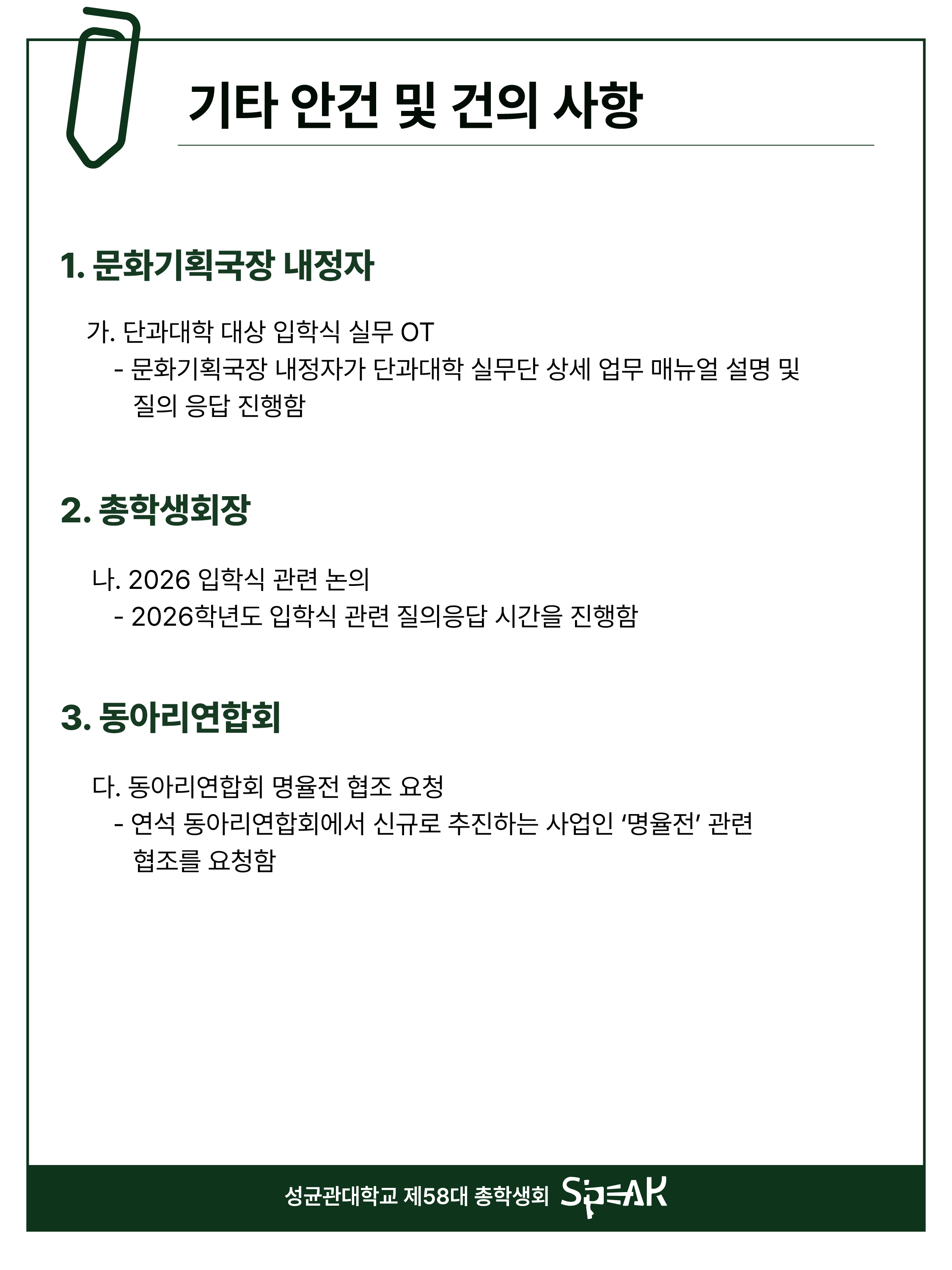 * The full meeting minute can be found in the SKKU Student Council official website. (Refer to Linktree)
