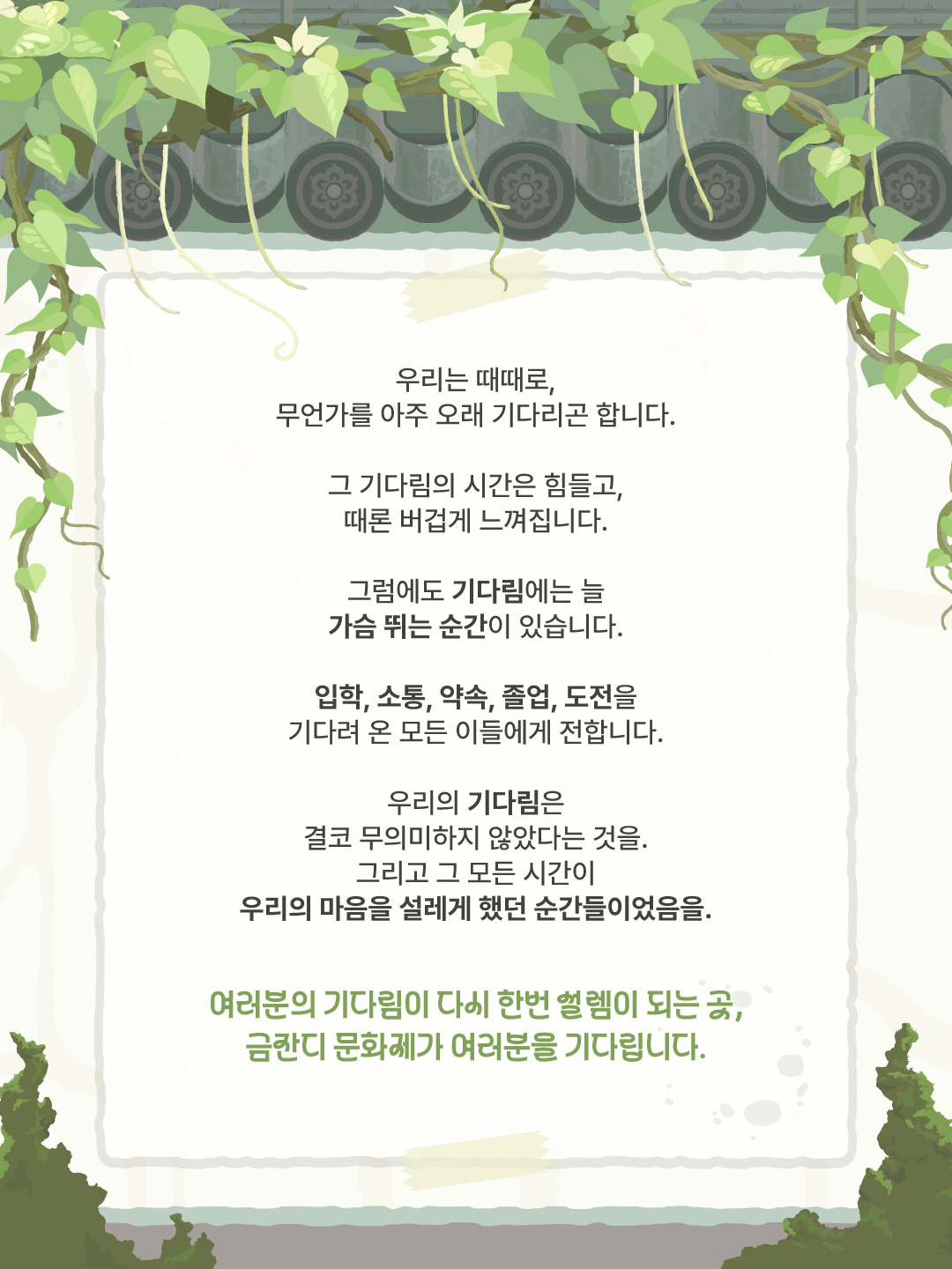 금잔디 문화제에서 기다림을 품은 설렘을 함께 즐겨주세요!