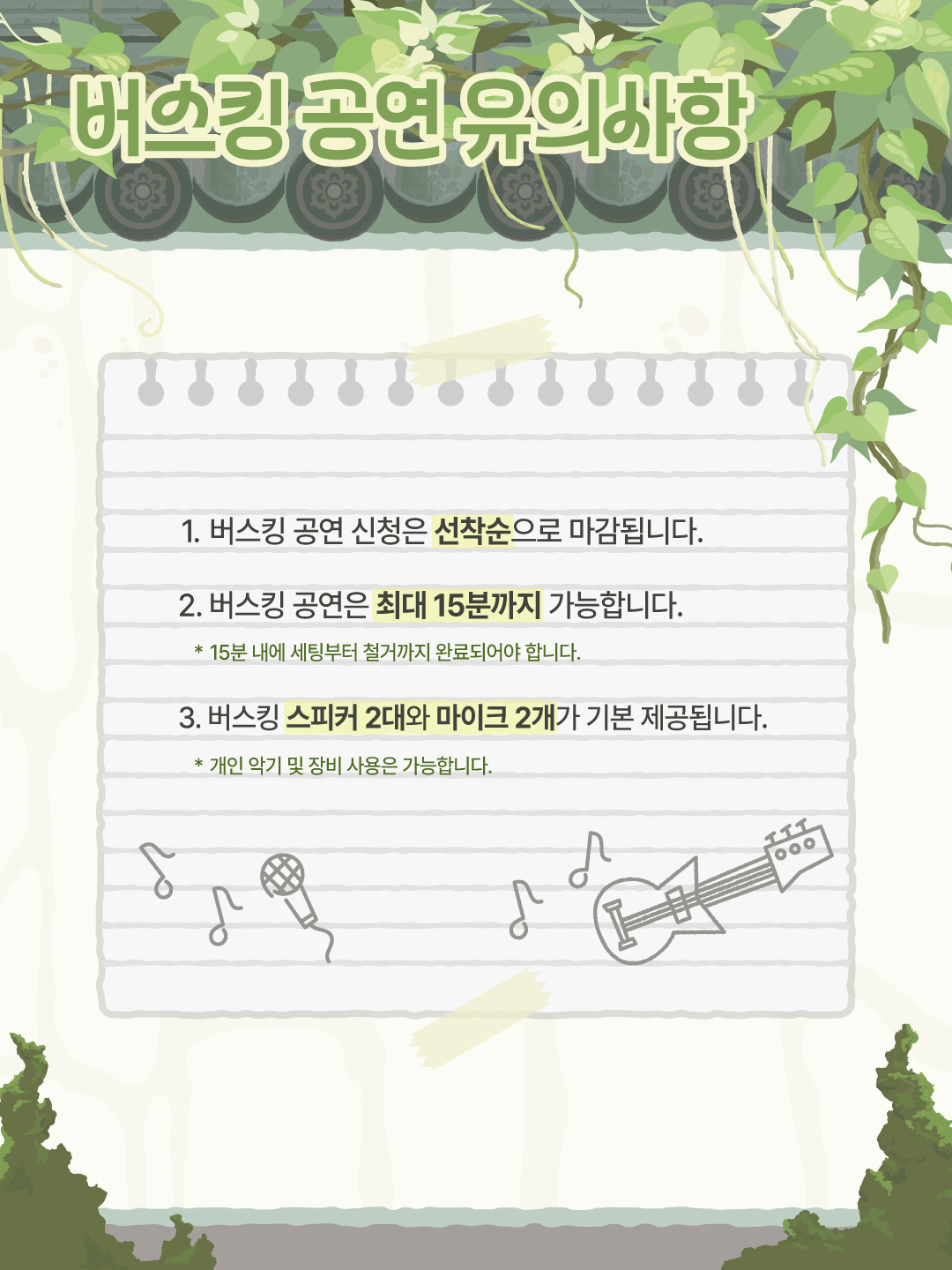 2) 버스킹 공연은 최대 15분까지 가능합니다.