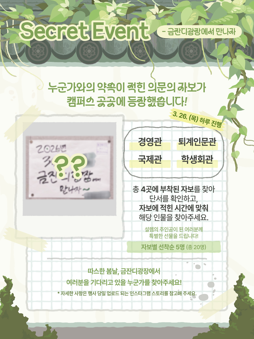 * Special Event - 누군가와의 약속이 적힌 의문의 자보가 캠퍼스 곳곳에 등장한다!