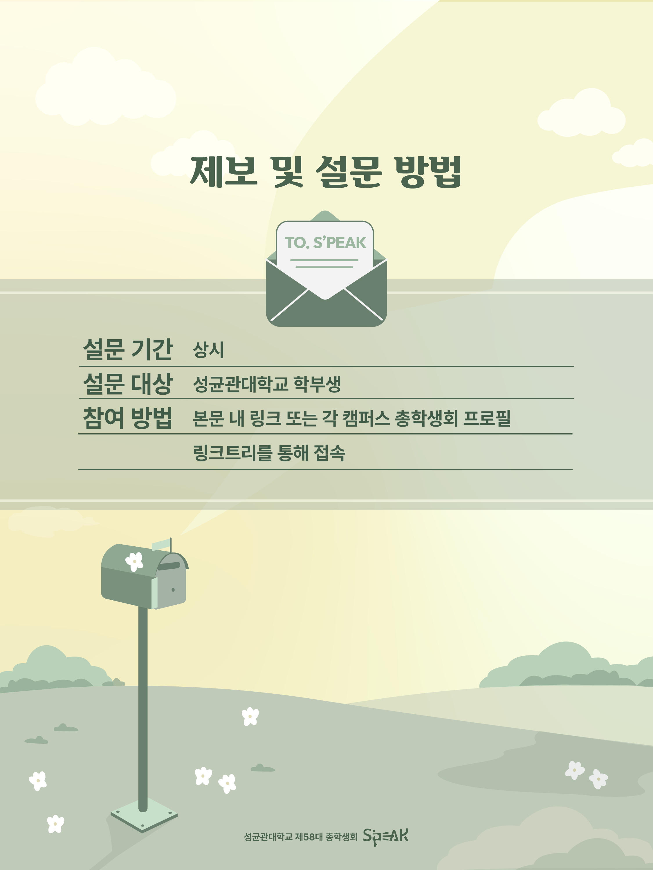 안녕하세요, 성균관대학교 제58대 총학생회 S'PEAK입니다.