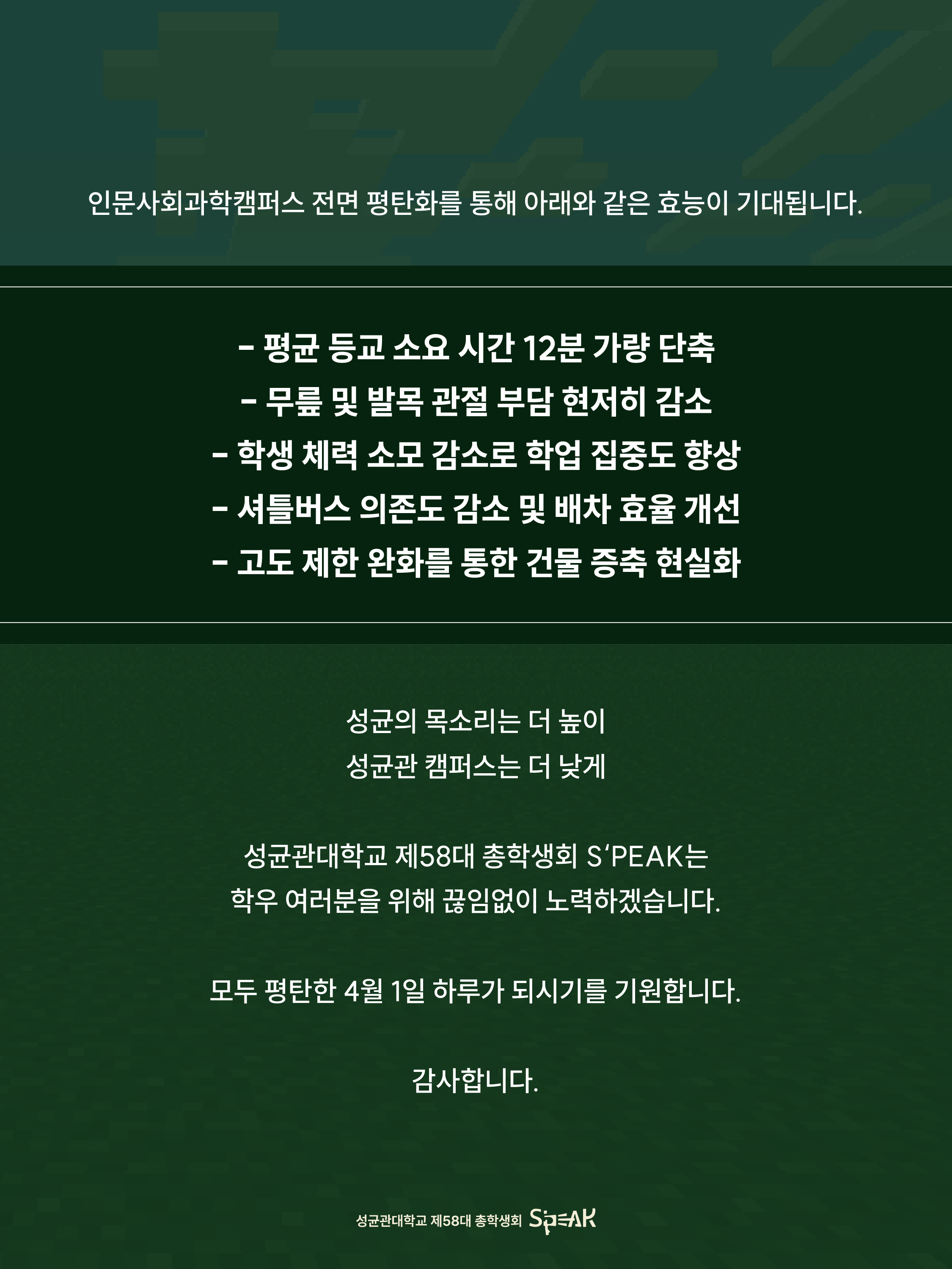 성균관대학교 제58대 총학생회 S'PEAK는 학우 여러분을 위해 끊임없이 노력하겠습니다.