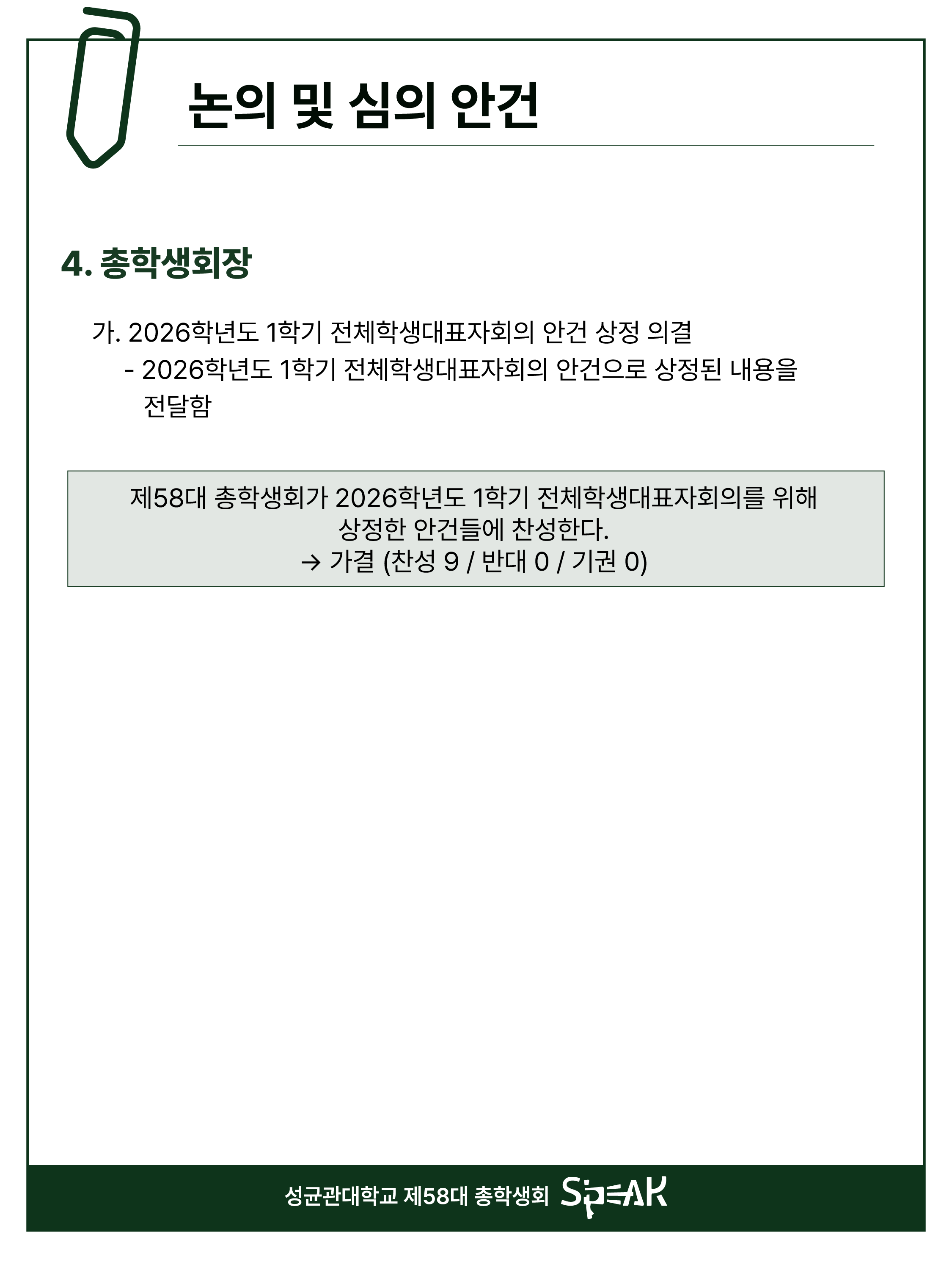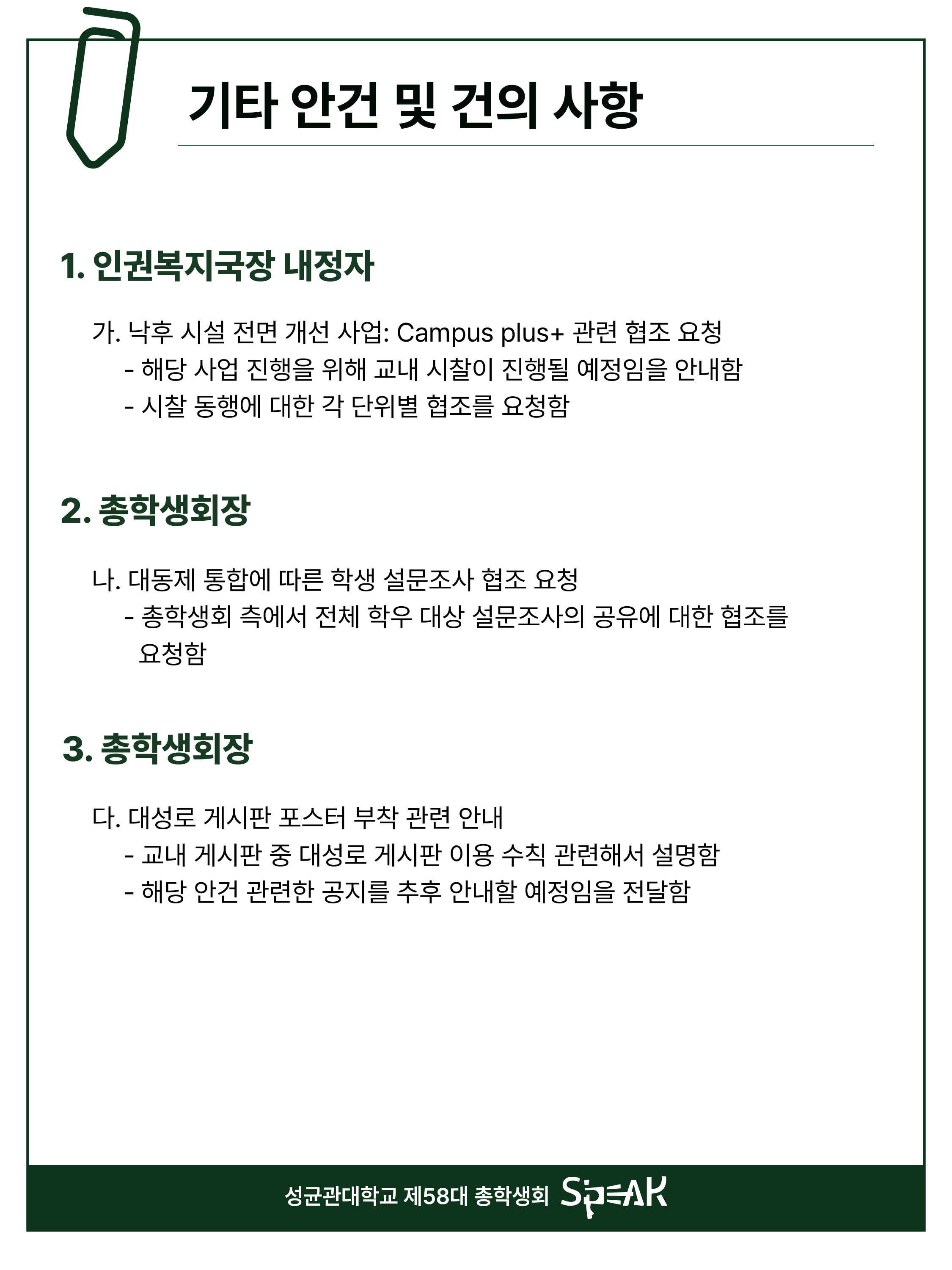 * The full meeting minute can be found in the SKKU Student Council official website. (Refer to Linktree)