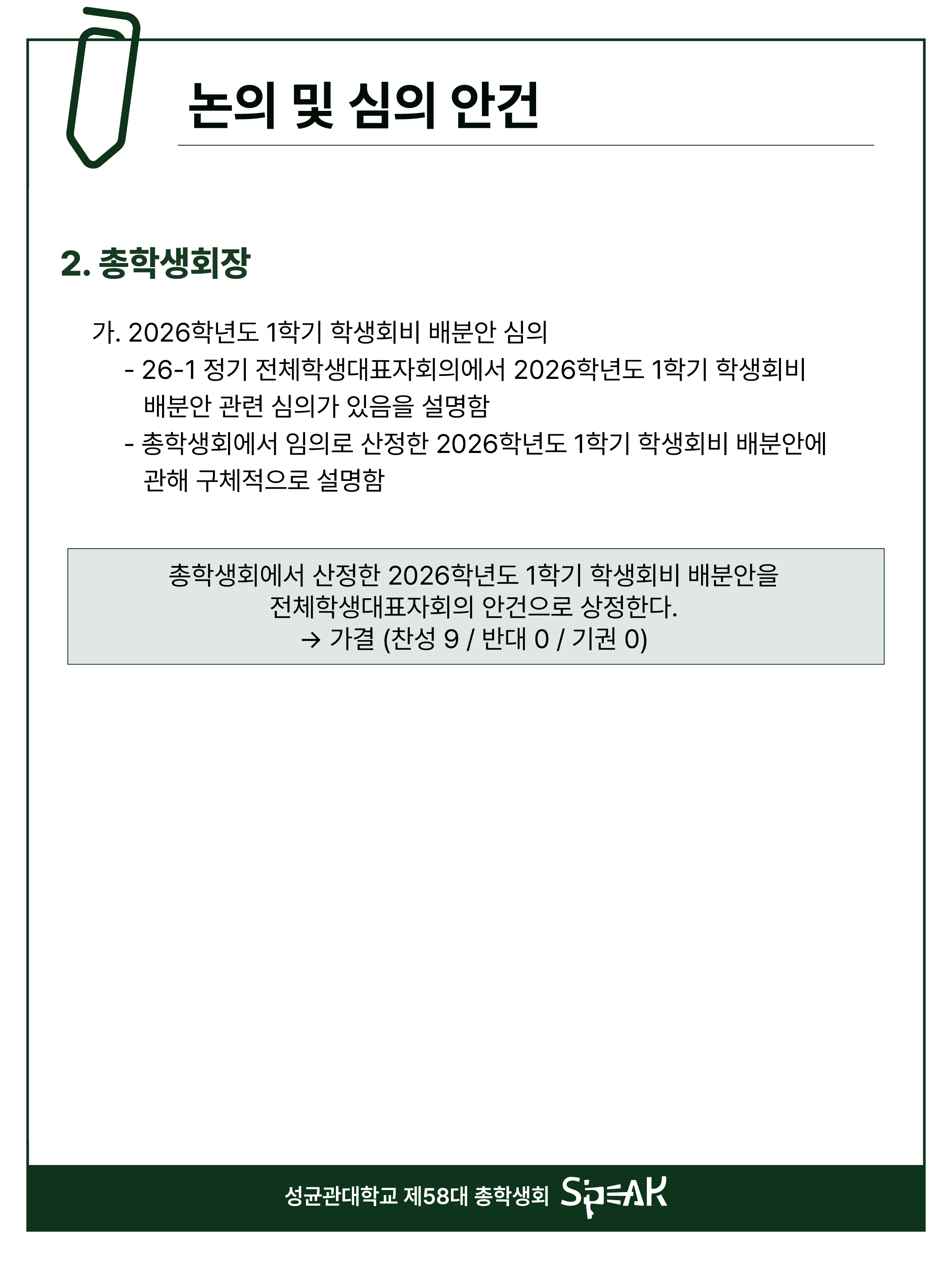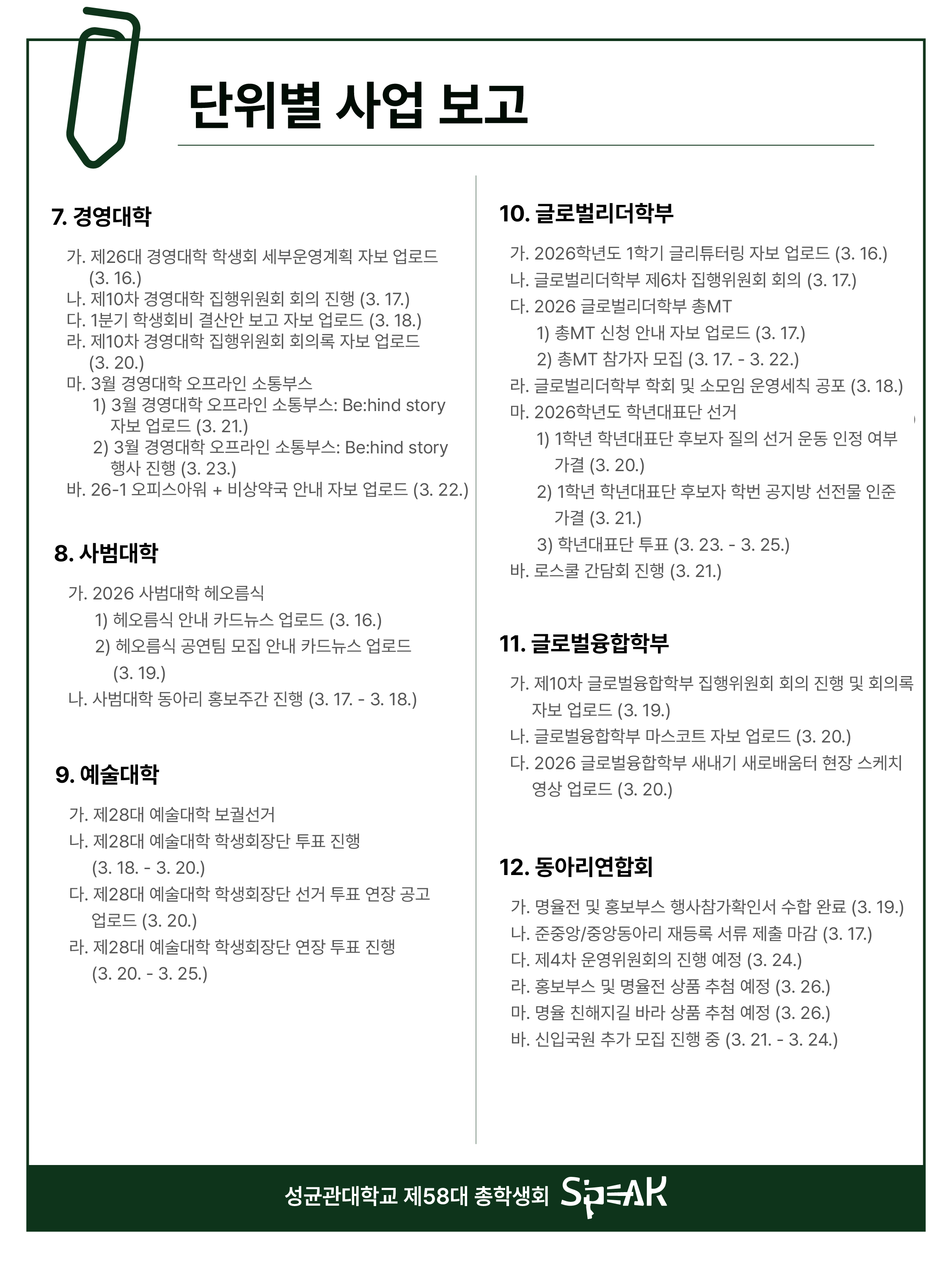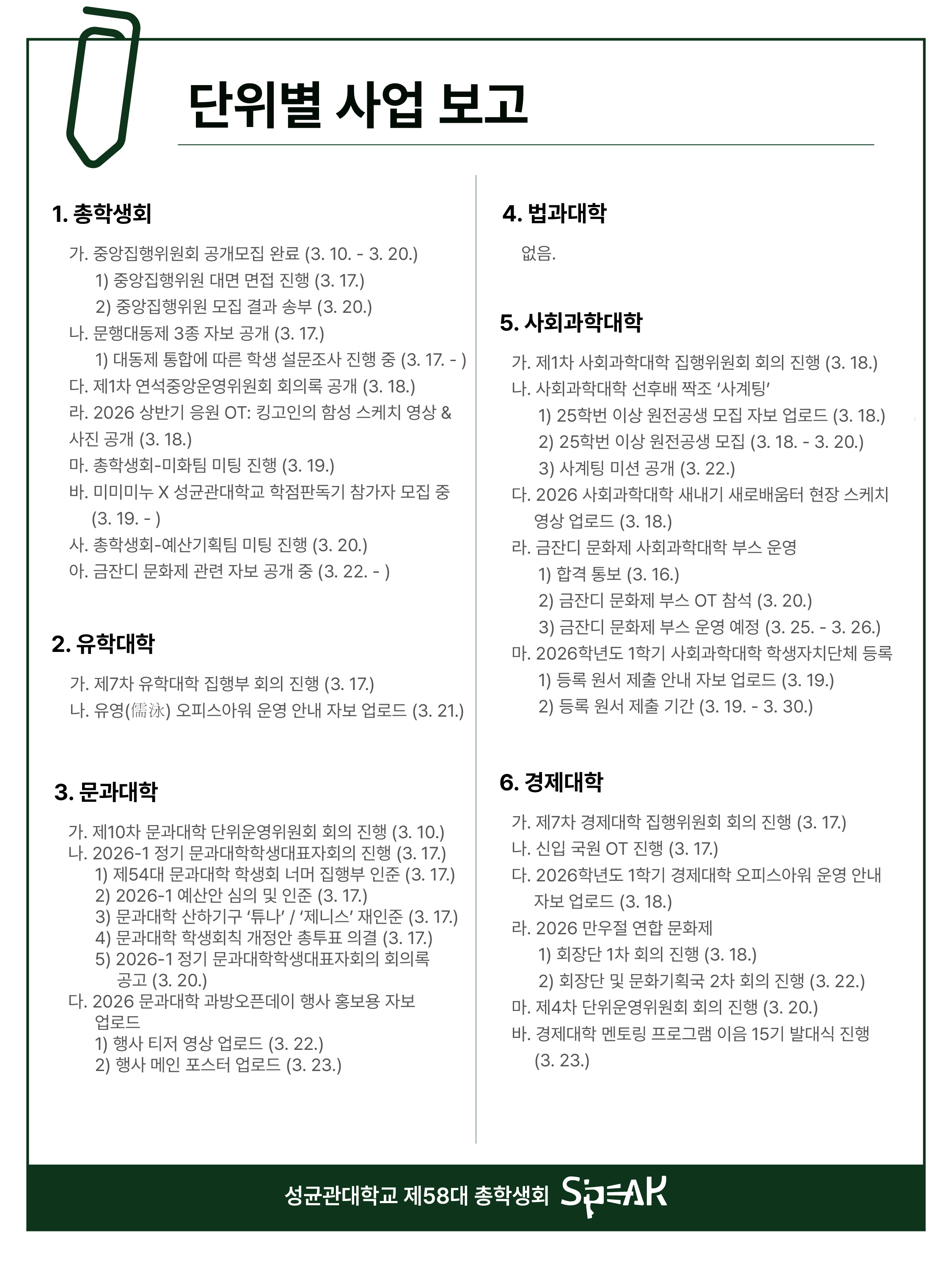 안녕하세요, 성균관대학교 제58대 총학생회 S’PEAK입니다.