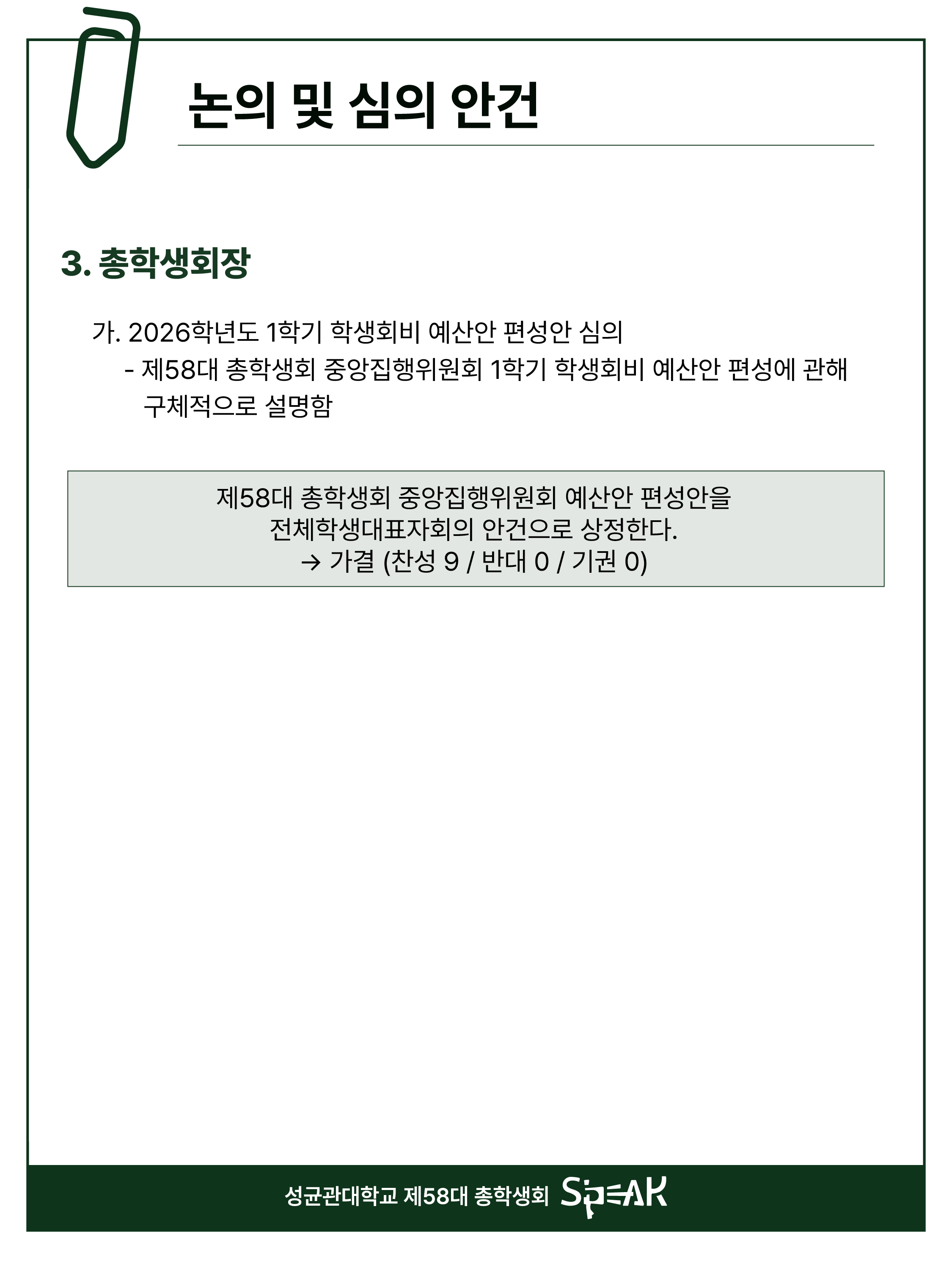 * For any inquiries and questions about the meeting minute, please contact through the SKKU Student Council communication channels.