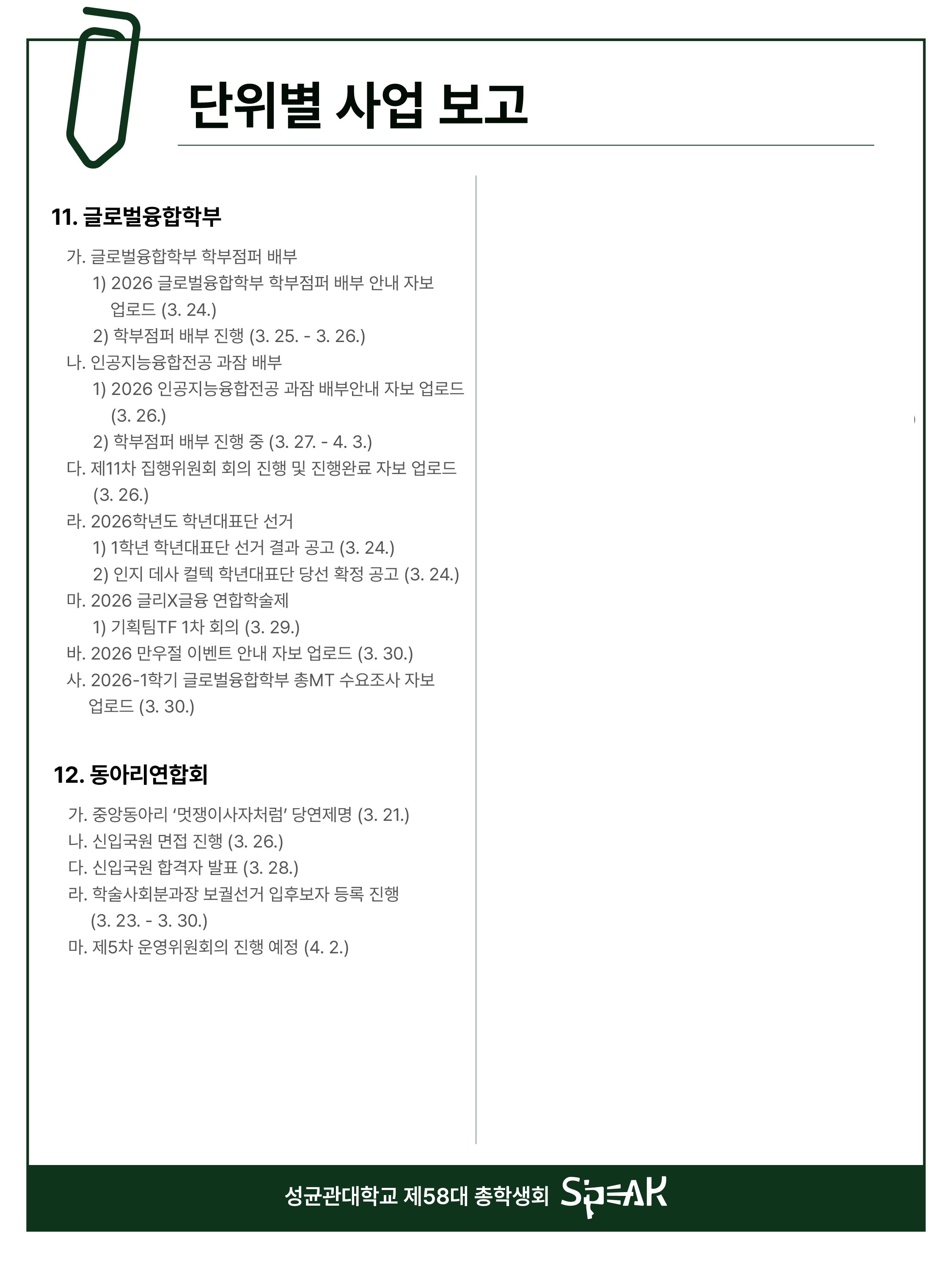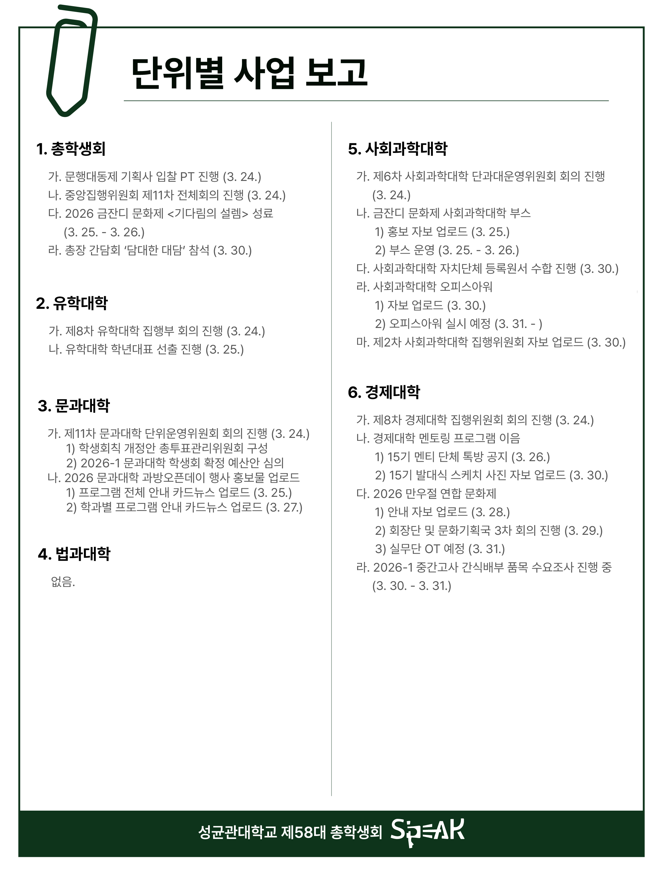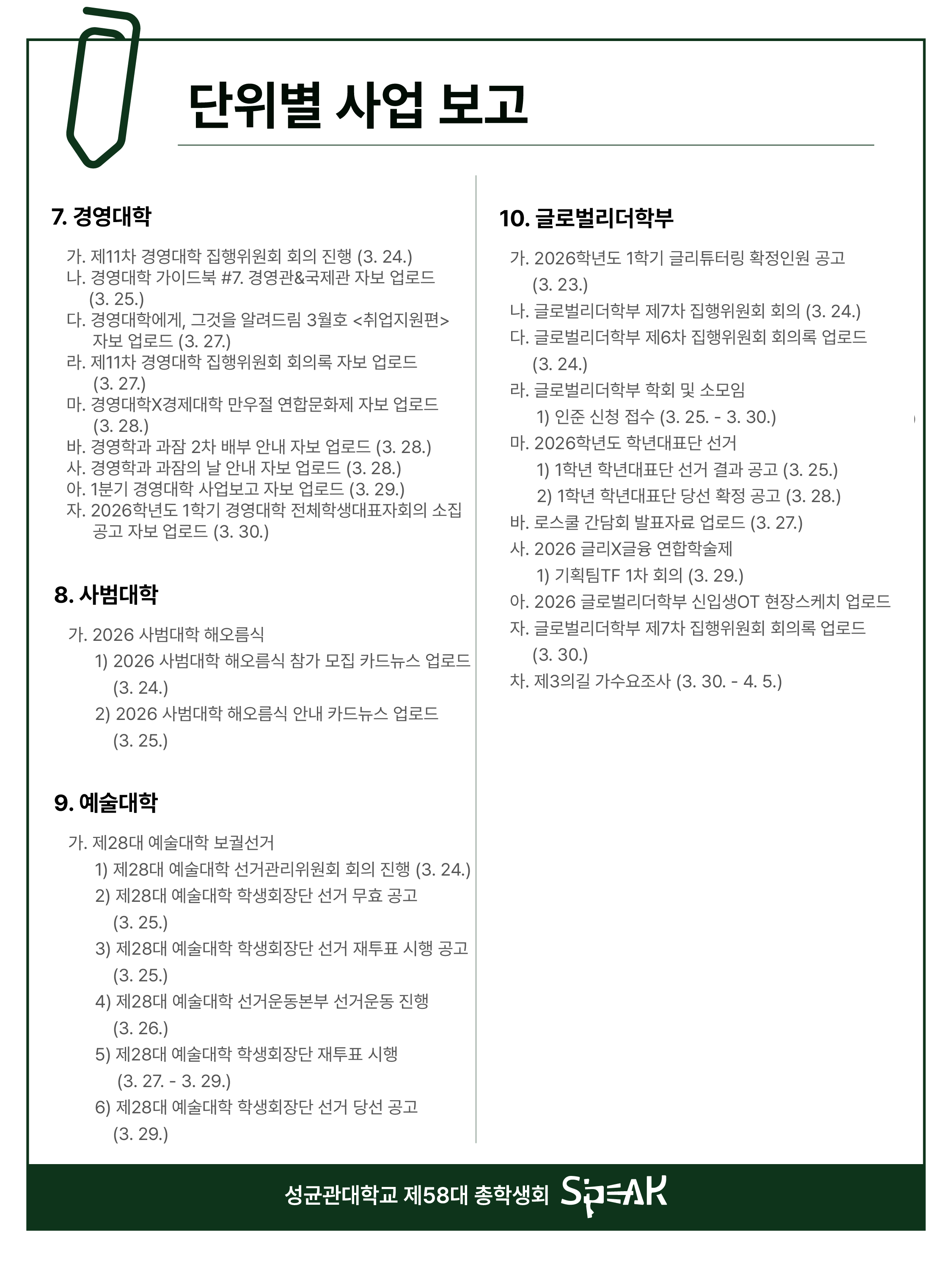 안녕하세요, 성균관대학교 제58대 총학생회 S’PEAK입니다.