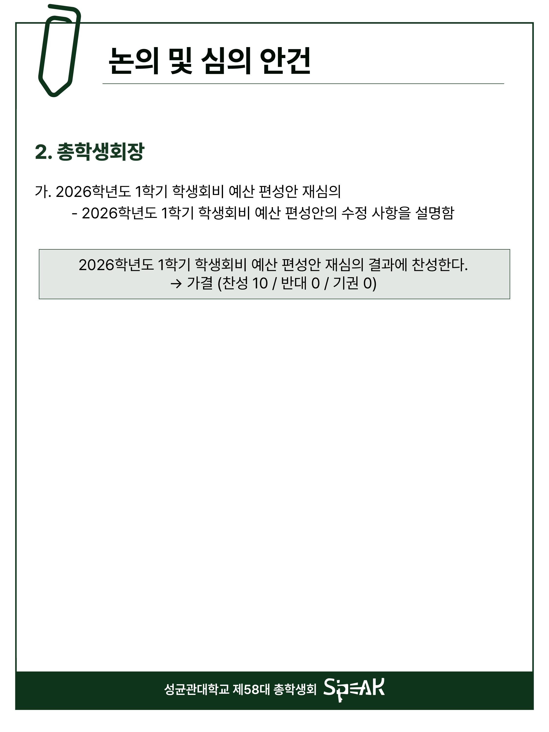 * For any inquiries and questions about the meeting minute, please contact through the SKKU Student Council communication channels.