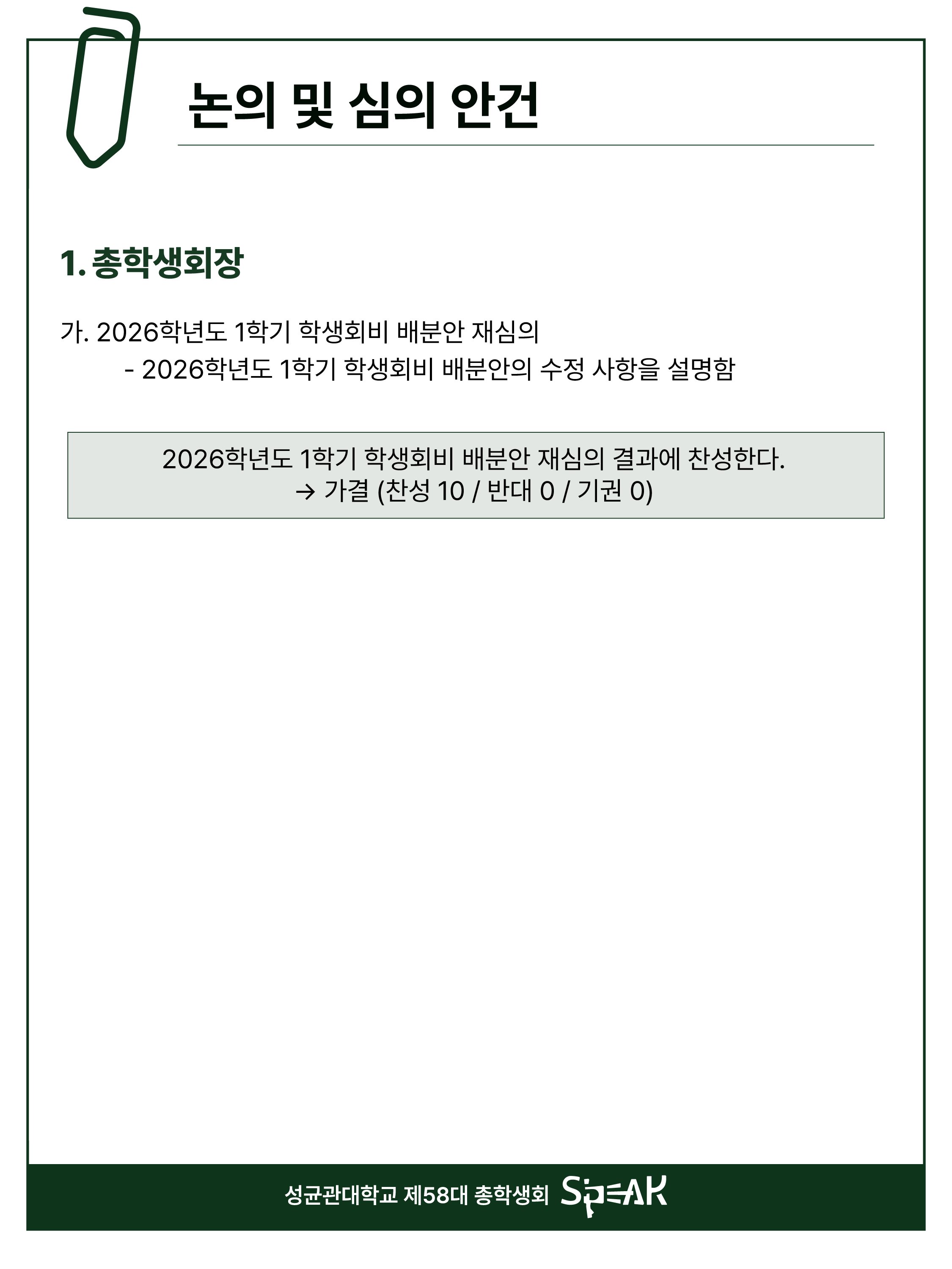 * The full meeting minute can be found in the SKKU Student Council official website. (Refer to Linktree)