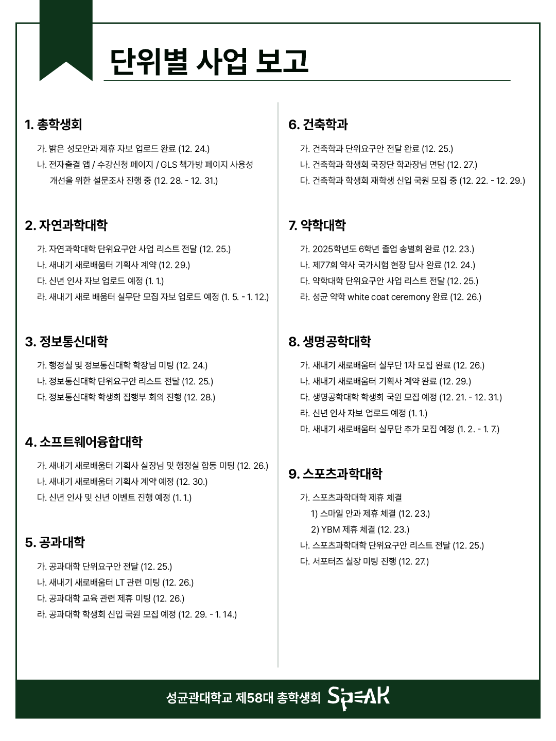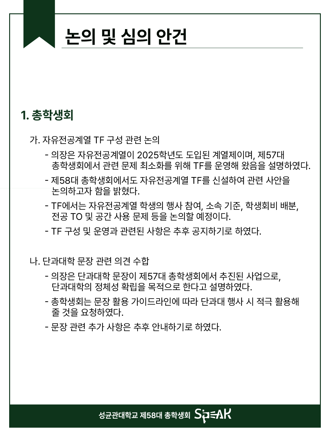 성균관대학교 제58대 총학생회 S’PEAK입니다.