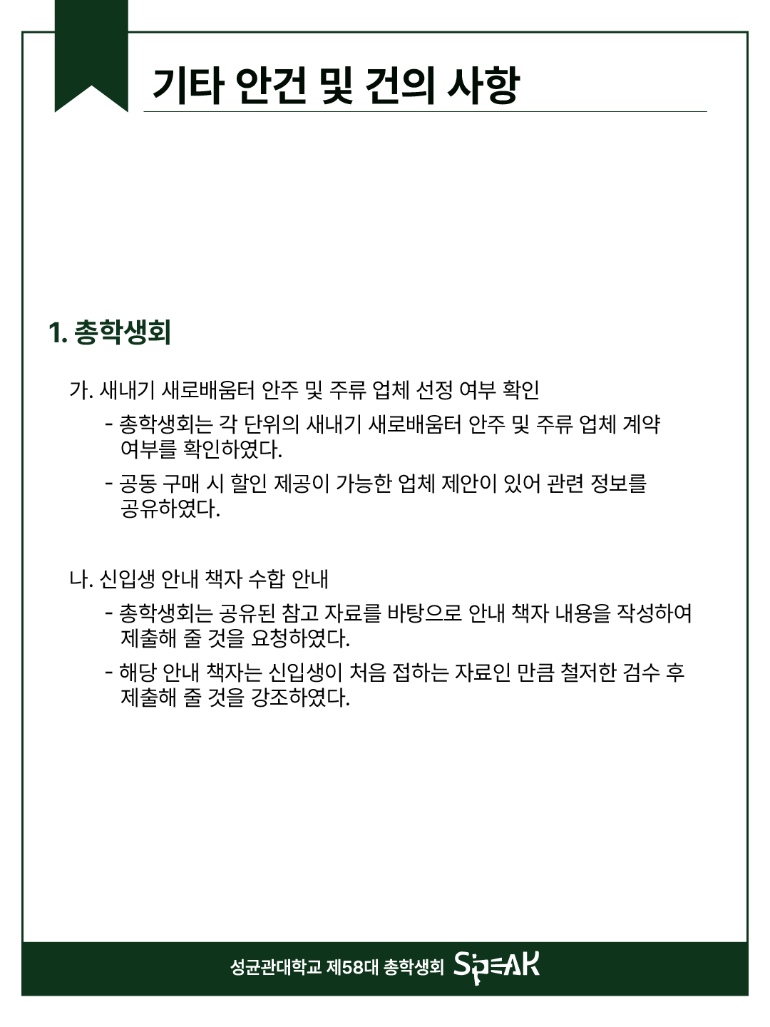 * For inquiries regarding the minutes, please contact the Sungkyunkwan University Natural Sciences Campus Student Council communication channel.