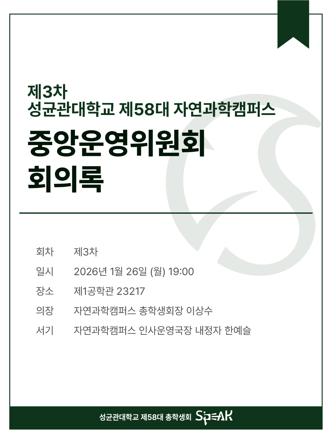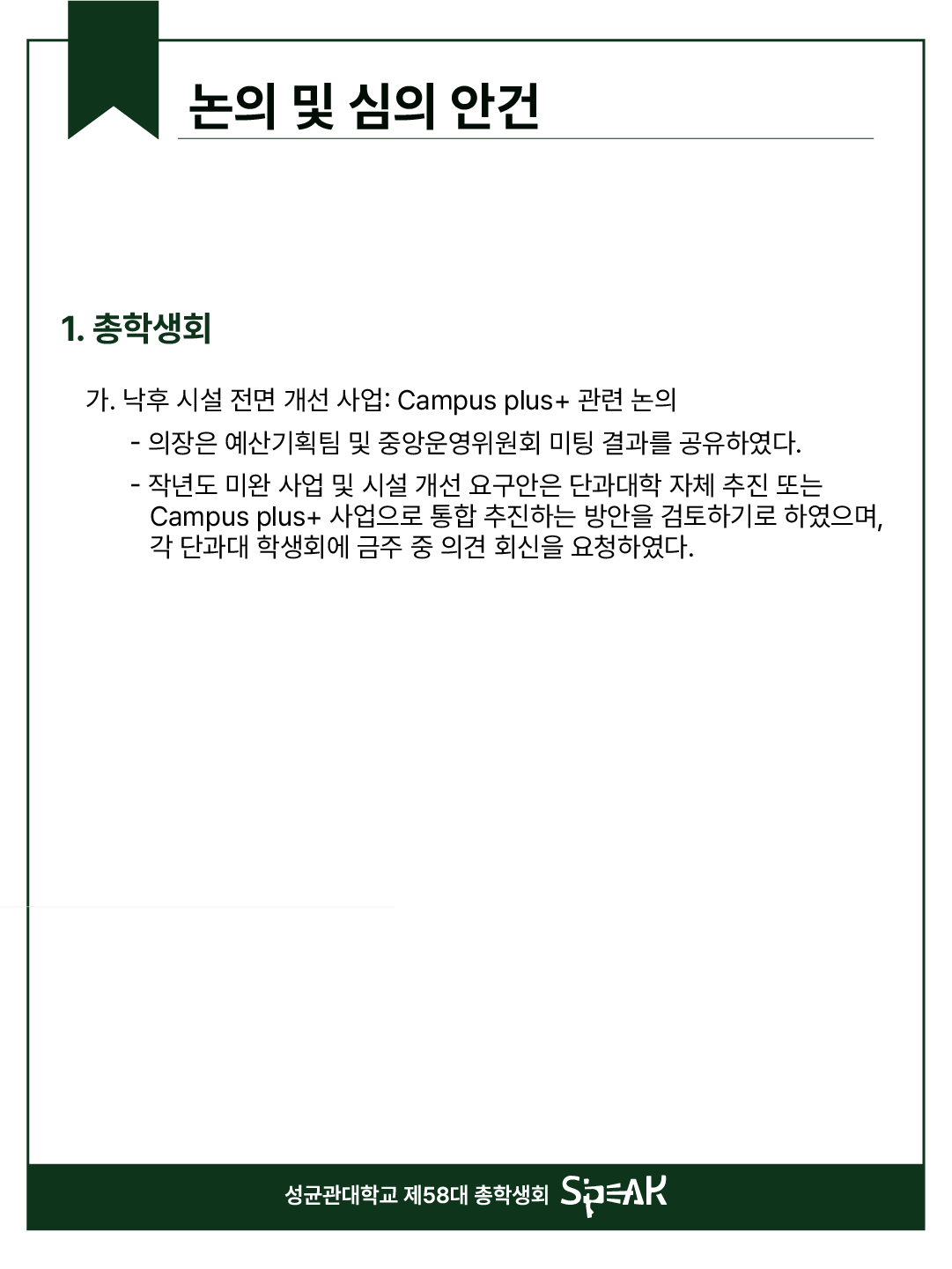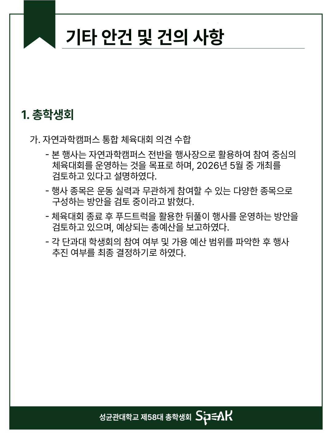 성균관대학교 제58대 총학생회 S’PEAK입니다.