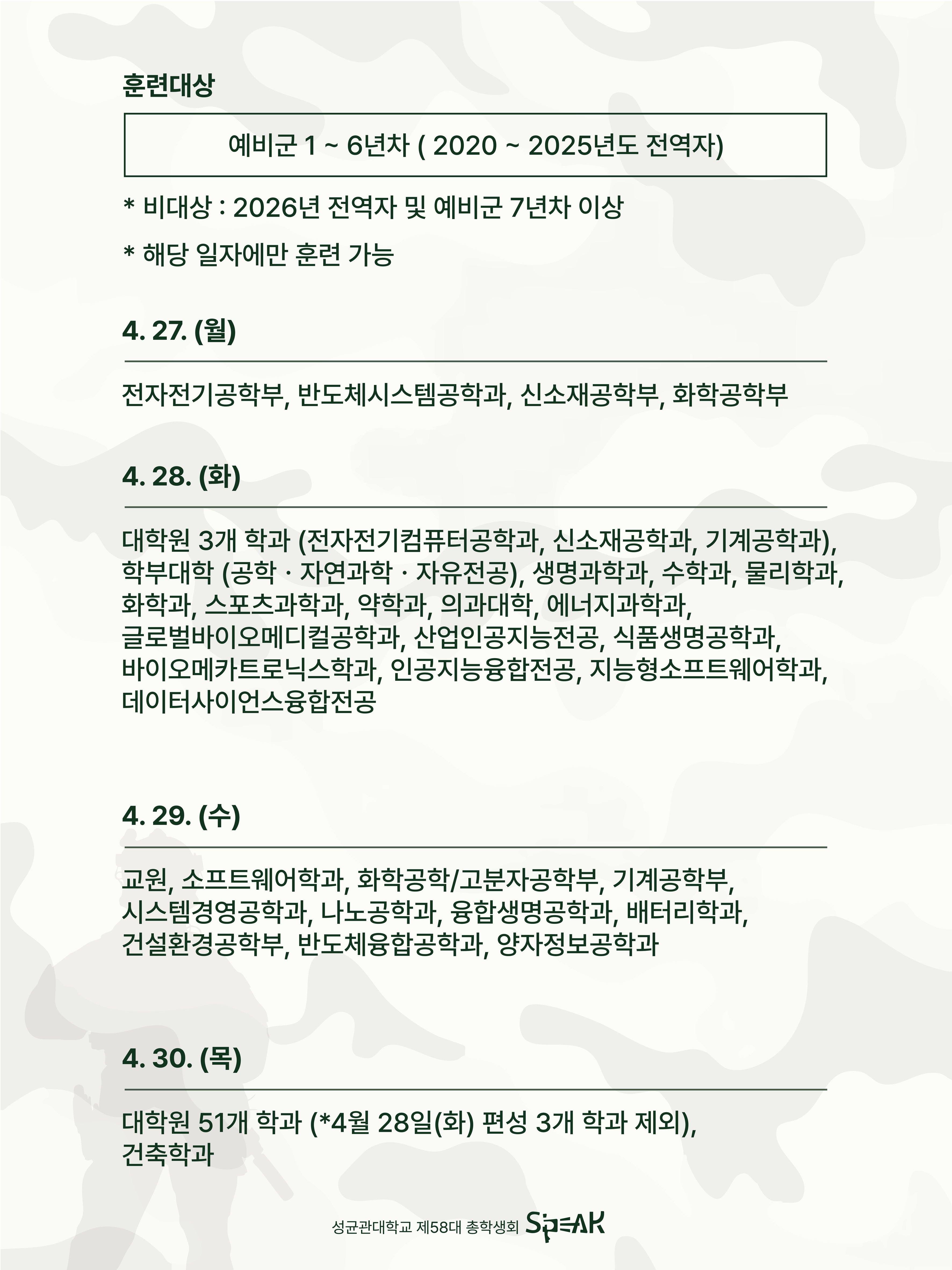 2026년 자연과학캠퍼스 예비군 훈련 안내드립니다.
