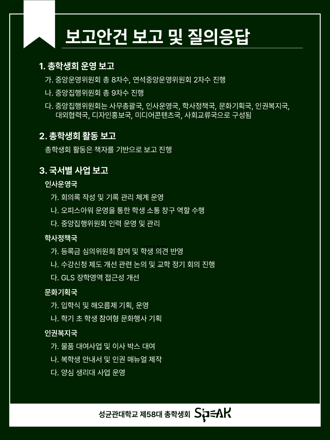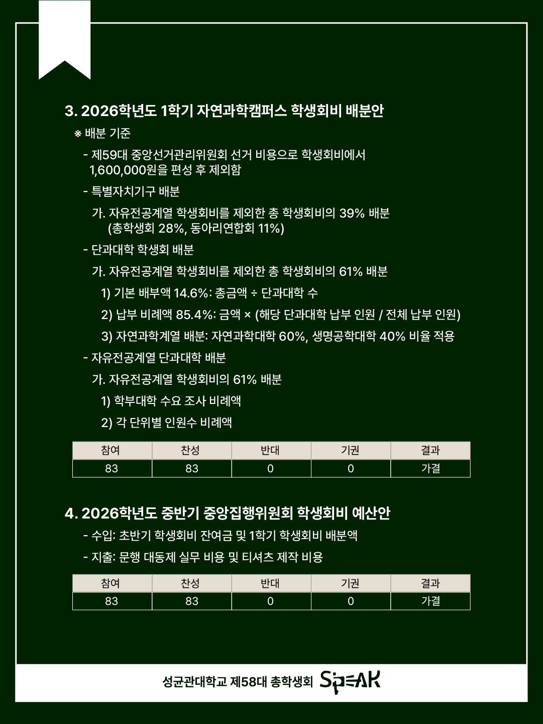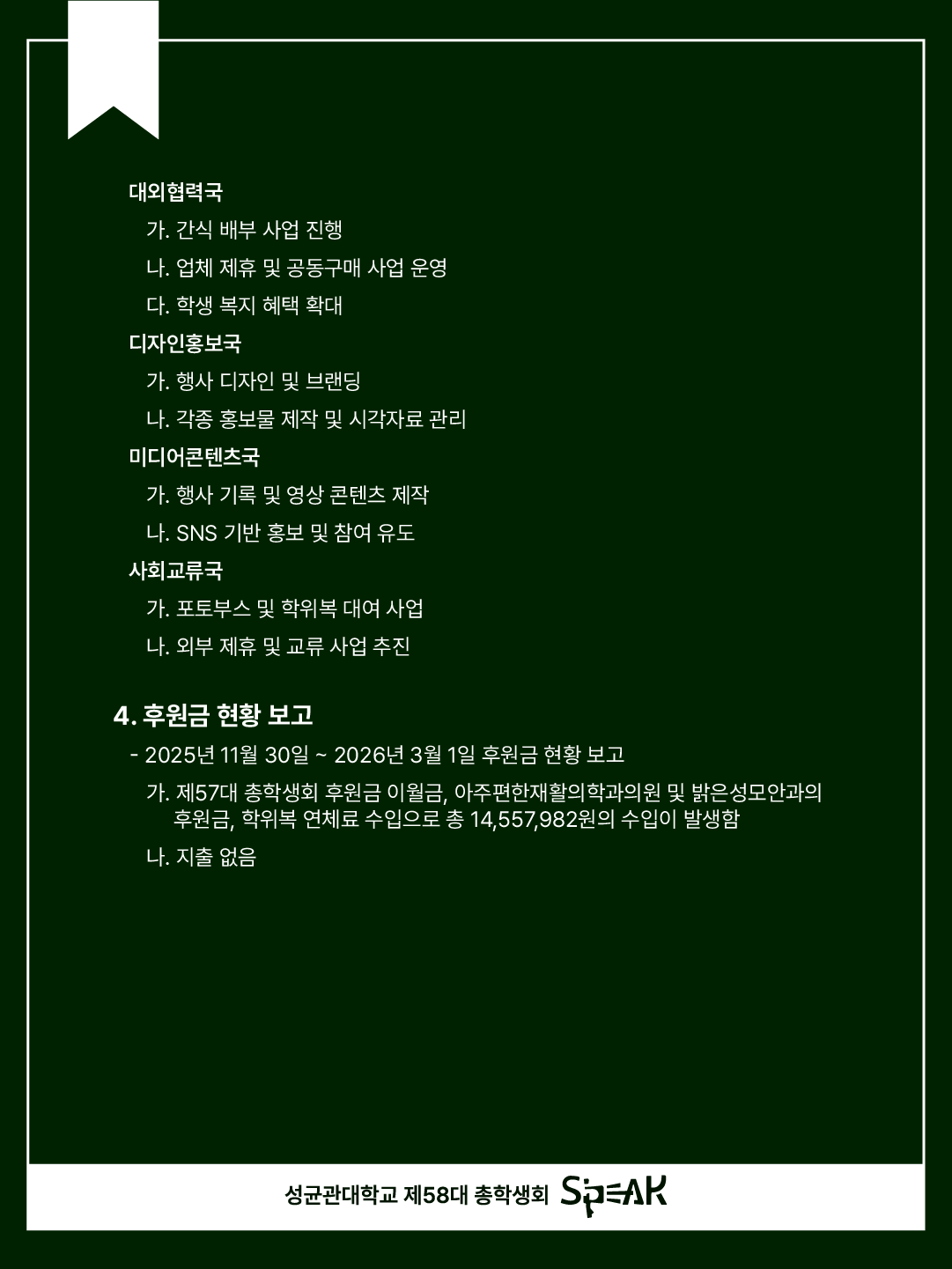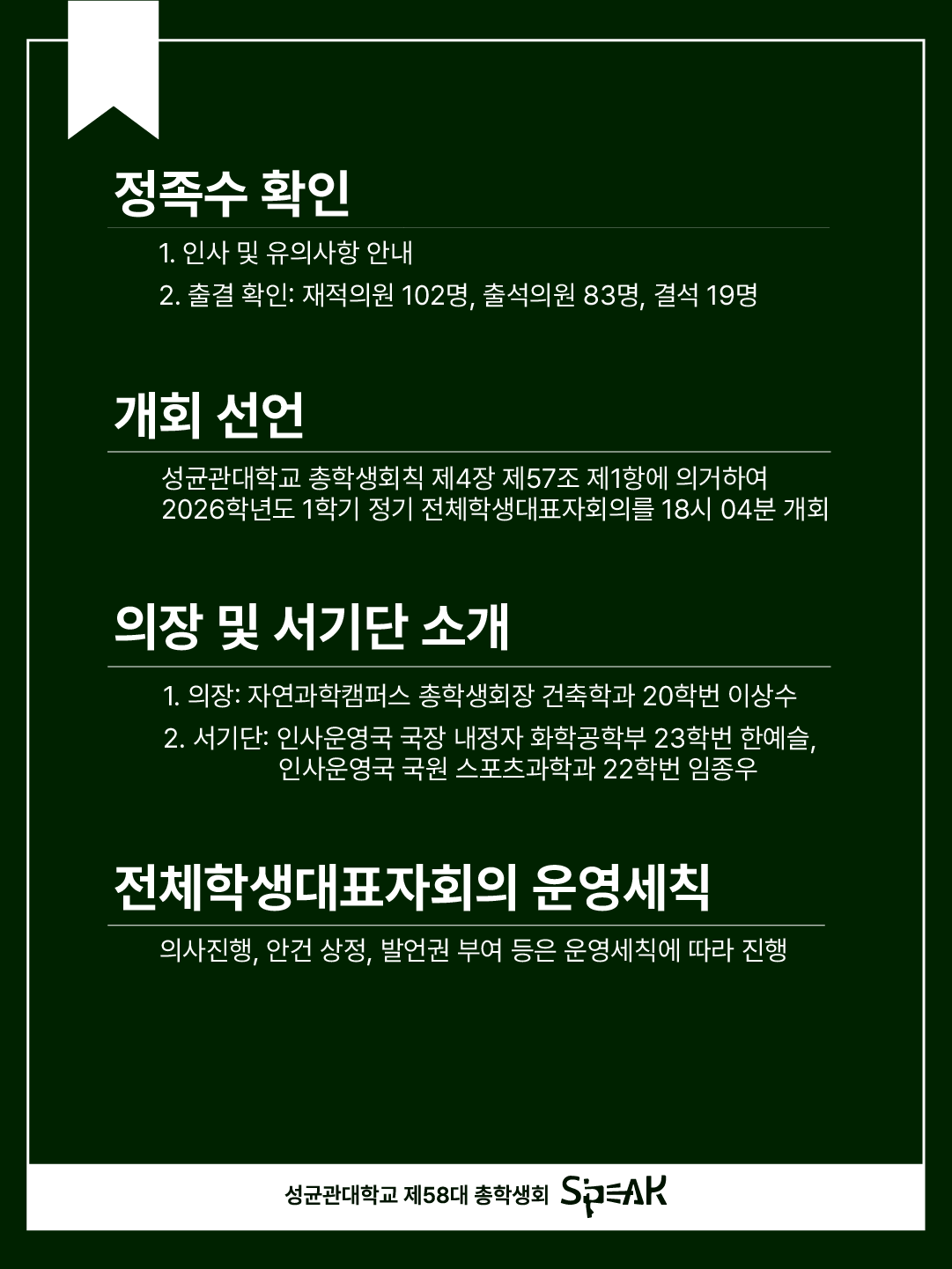 Greetings, this is S’PEAK, the 58th Student Council of the Natural Sciences Campus.