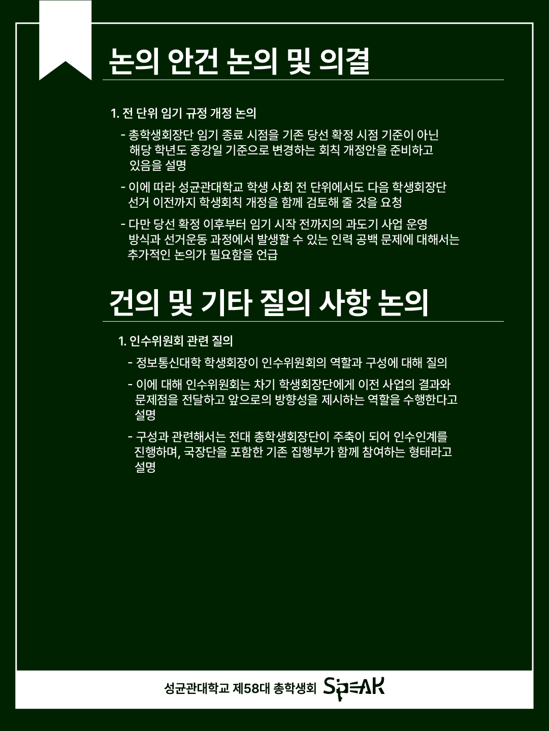 *총학생회 홈페이지에서 회의록 및 서기록 전문을 확인하실 수 있습니다. (링크트리 참조)