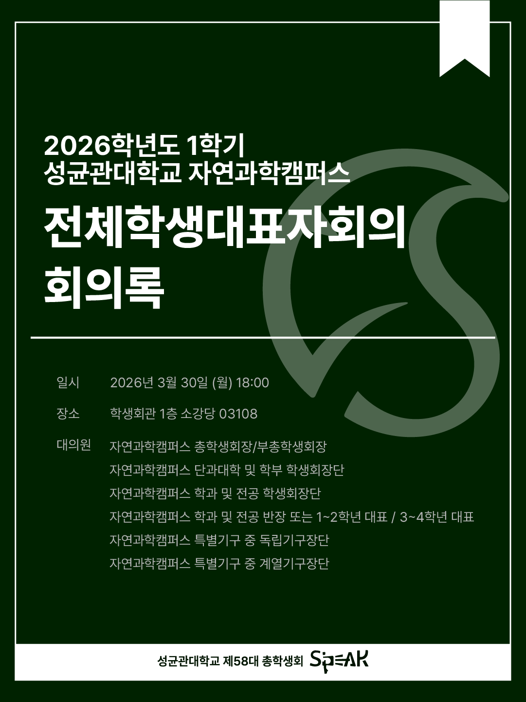 안녕하세요, 제58대 자연과학캠퍼스 총학생회 S’PEAK입니다.